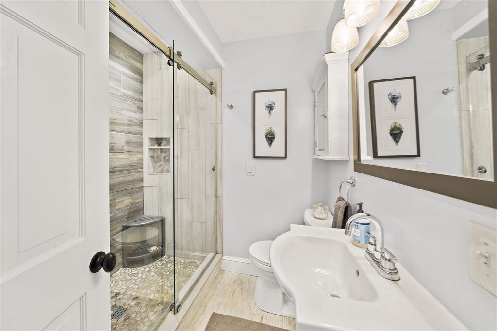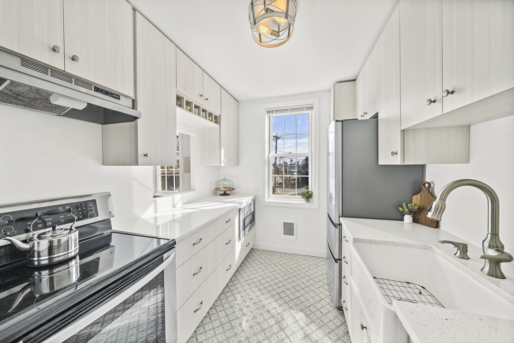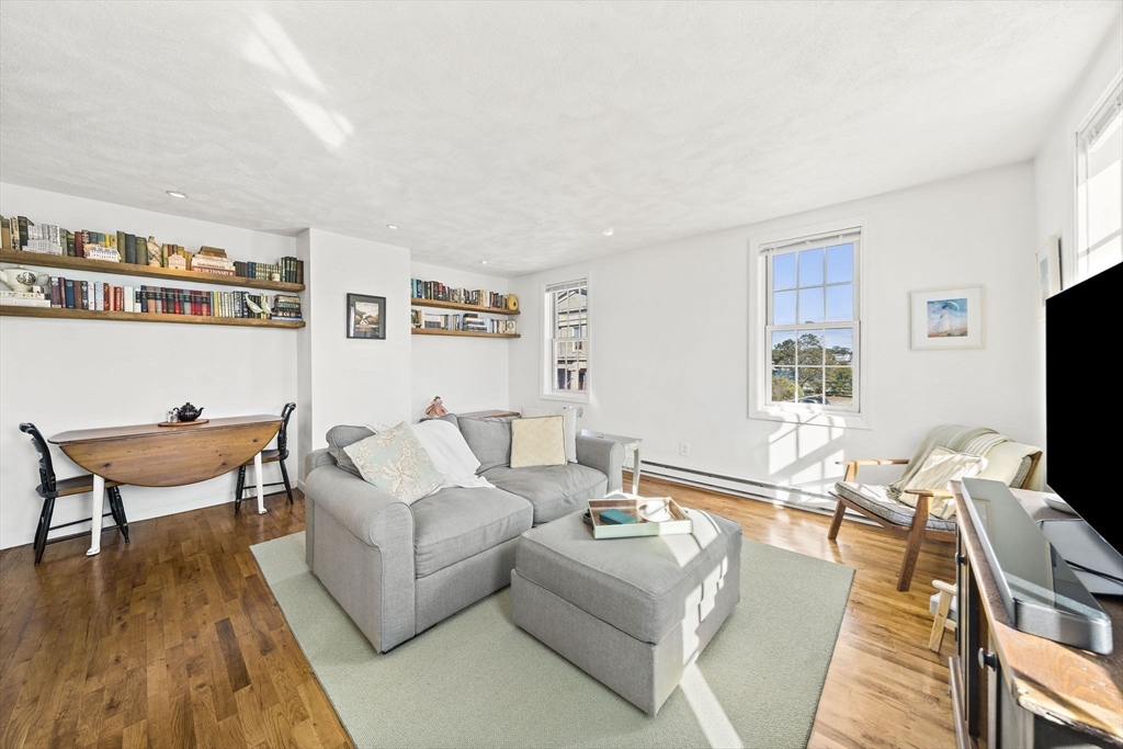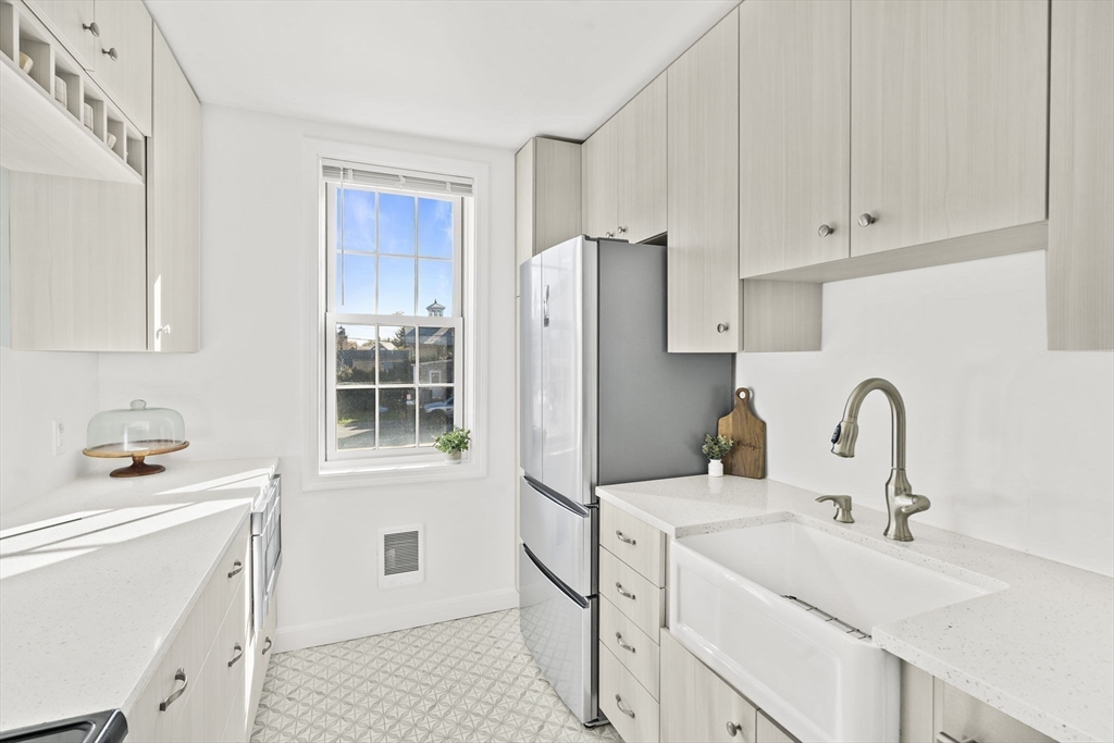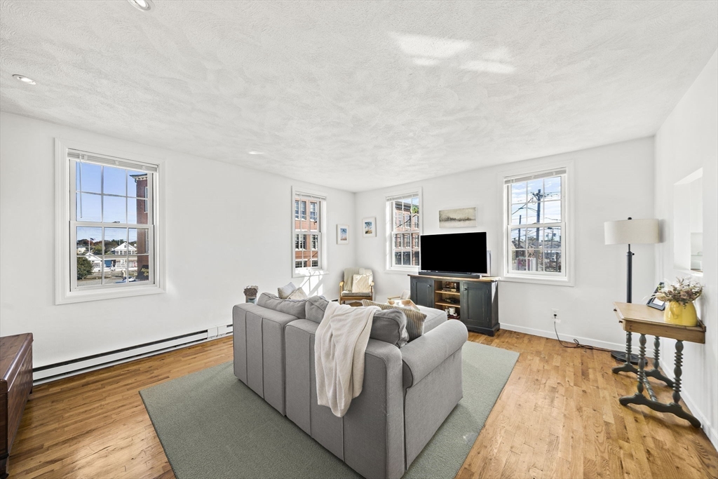Perfectly situated in the heart of historic downtown Newburyport & steps to the waterfront, this beautifully renovated condo offers charm, style & convenience in one of the city’s most desirable locations. With 890 square feet of light-filled living space & new windows showcasing lovely views throughout, this home features 2 bedrooms & 2 baths—all on one level. Enter through the exposed brick foyer to the stunning kitchen & bright, open living room. The primary suite includes a generous closet & elegant half bath, while the second bedroom easily doubles as a home office or guest space. The full bath features a beautifully tiled shower. In-unit laundry for added convenience. Additional highlights include basement storage, one assigned off-street parking space and pet friendly! Enjoy everything downtown Newburyport has to offer: vibrant shops, award-winning restaurants & the scenic boardwalk. This is a rare opportunity for classic Newburyport living with timeless appeal.
