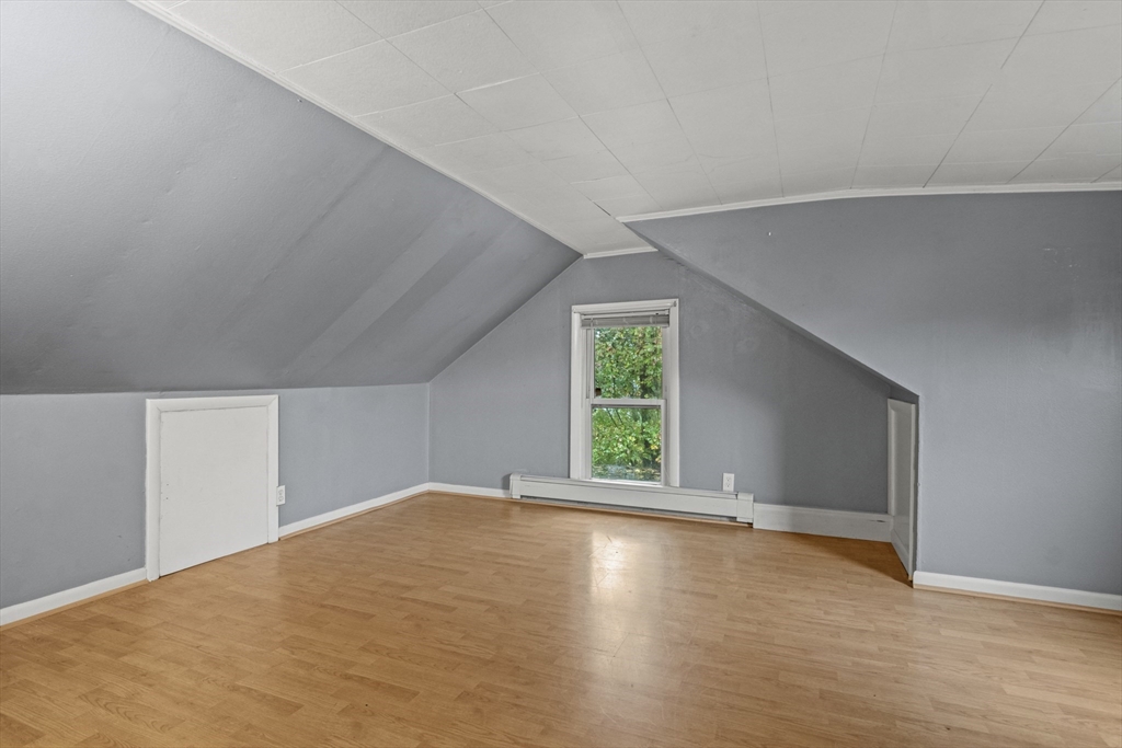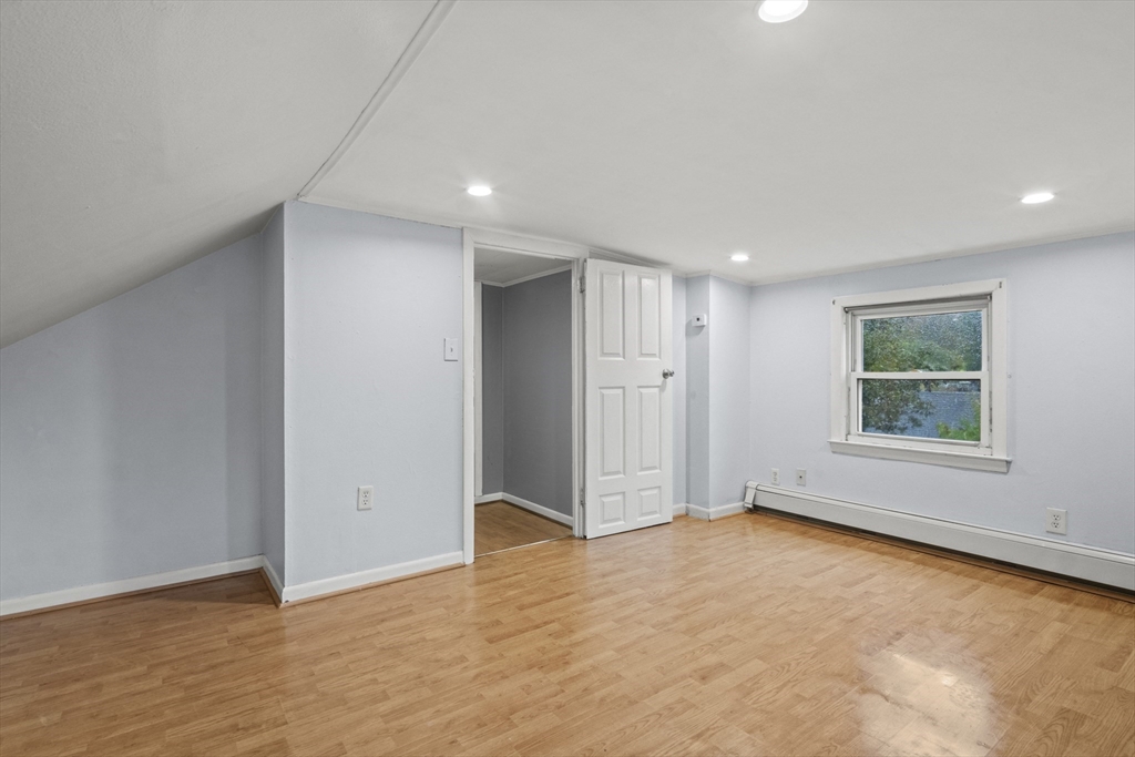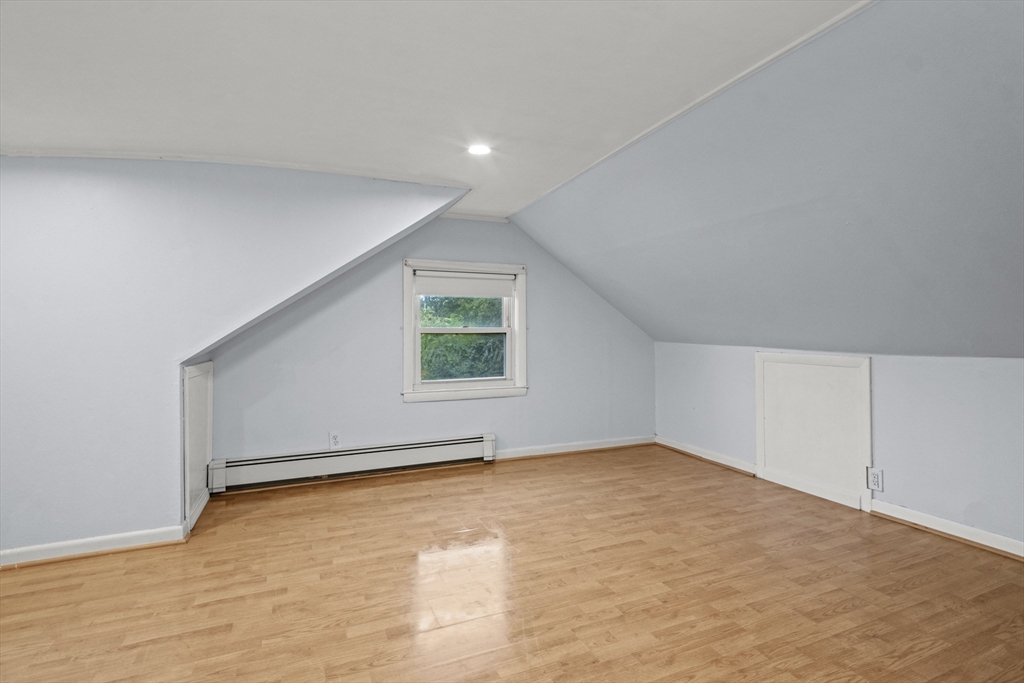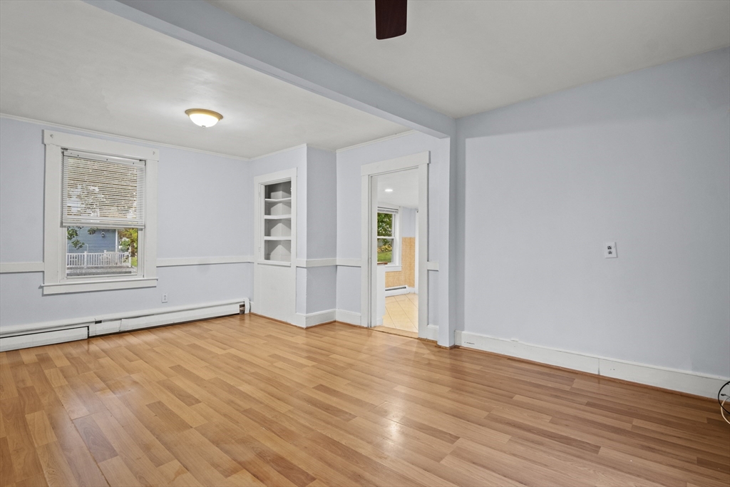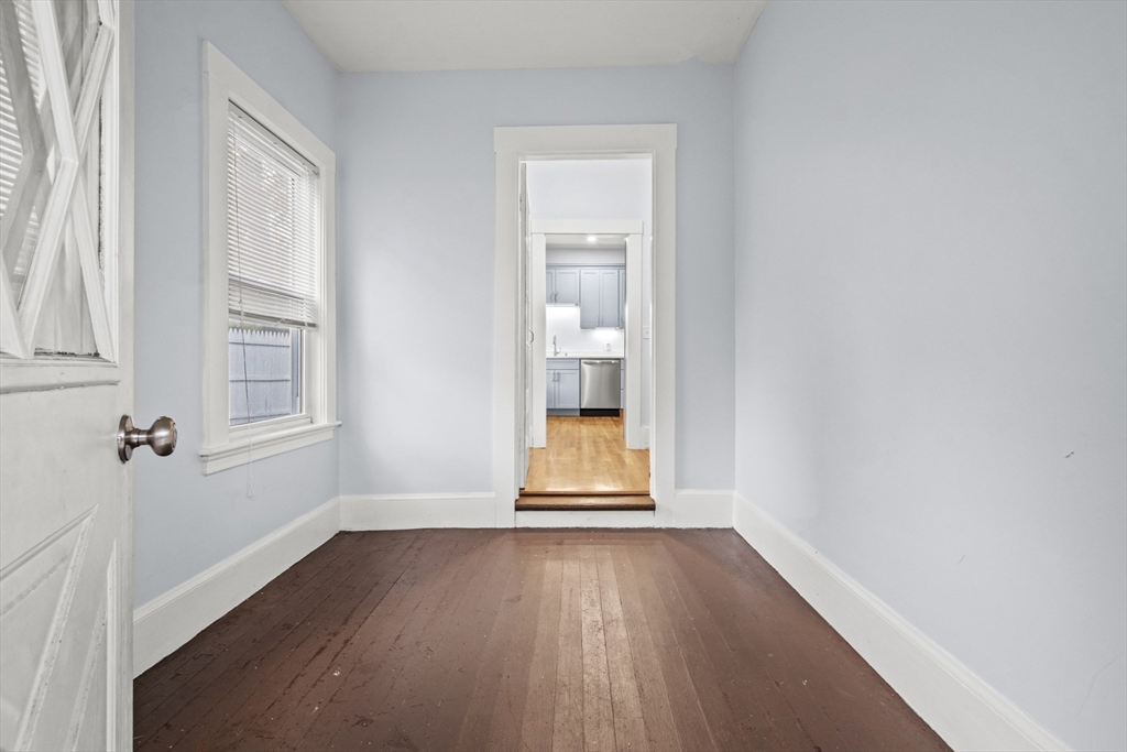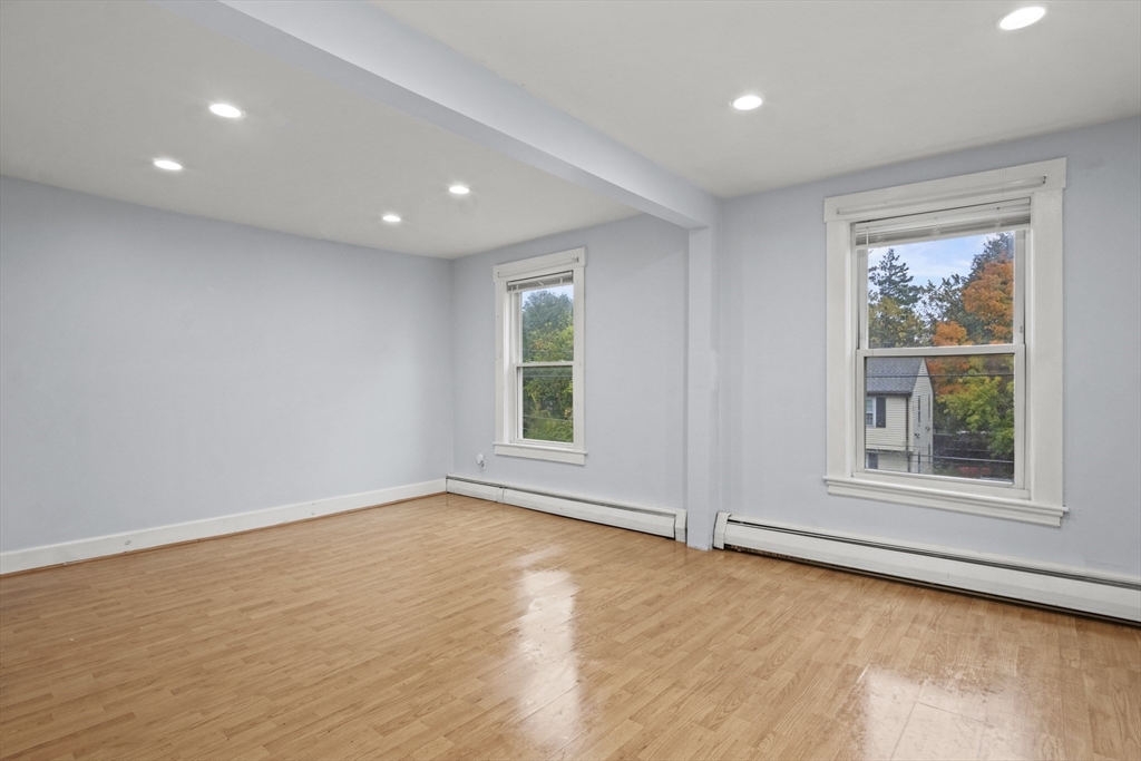 This well-maintained two-family home offers an excellent opportunity for owner-occupancy or investment. The first-floor unit has been extensively updated with a stunning kitchen featuring quartz countertops, new cabinetry, stainless steel sink, gas stove, and a breakfast bar that opens to a bright living area. Additional upgrades include spray foam insulation throughout, a new water heater, and a refreshed bath with new toilet, lighting, and exhaust fan. Laundry hookups are located in the basement. The second-floor unit features a spacious living room with custom built-ins, an eat-in kitchen, new boiler, laundry hookups with basement access, and a bedroom with new insulation, ceiling, and recessed lights. Rear siding was completely redone two years ago, and two smaller roofs were replaced within the last three. Outside offers a private patio and a two-car driveway for off-street parking.