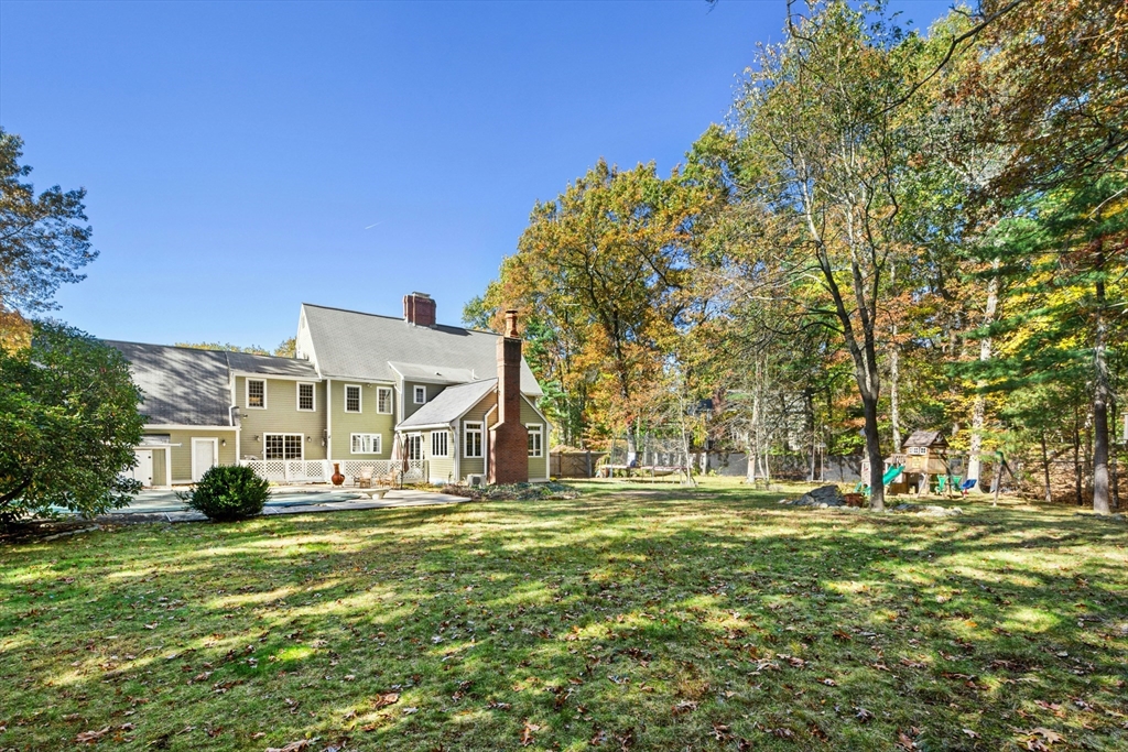 Looking for a stunning home in one of Holliston’s most sought-after neighborhoods? This stately garrison colonial, in a desirable double cul-de-sac, offers exceptional living with a blend of elegance and comfort! Enjoy cozy evenings in the great room with its stunning stone fireplace, or gather in the kitchen featuring granite countertops, SS appliances, double oven, and butler’s pantry—ideal for hosting. A fireplaced formal dining room leads to a living room with a third fireplace! Dedicated home office/library and powder room finish an expansive main level. Three generous bedrooms upstairs and a spacious primary suite tucked away with a spa-like bath, walk-in closet, secondary closet, and unfinished additional area. The finished lower level offers a custom wine cellar, gym, and bonus room. Outdoor living shines with a fenced backyard, inground gunite pool and firepit area—a private oasis! Walk up third floor awaits expansion! Convenient to Boston, 495, Rail Trail & Commuter rail!