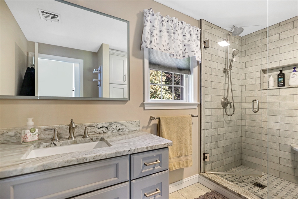 ***LEGAL ADU for added income*** Welcome home to this updated 5 bedroom, 3.5 bath Center Entrance Colonial with farmers' porch nestled in a desirable, commuter-friendly West Methuen neighborhood. Inside discover a bright and spacious layout, showcasing upgrades throughout. Enjoy year-round comfort with central A/C. The main level boasts generous living spaces, perfect for both daily life and entertaining. A standout feature is the ADU in the finished lower level, with over 700sq ft, offering privacy and independent living with its own separate entrance, ideal for extended family, guests or income. The exterior is just as impressive: An exceptional drive-through garage provides convenience and extra utility. The lush, green lawn is effortlessly maintained with the irrigation system. Enjoy the warmer weather on the oversized deck and the above-ground pool w/ heater - perfect for summer fun. A storage shed provides ample space for tools and equipment. This home is a MUST SEE!