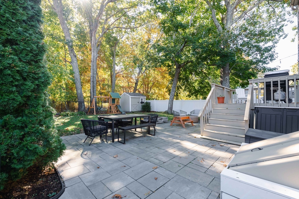 Tucked back on a tree-lined street in Marshfield’s highly sought-after Rexhame Beach neighborhood, 37 Homestead Ave offers the perfect blend of coastal charm and modern living. This completely reimagined three-bedroom Colonial features an open-concept first floor with a stunning new kitchen—quartz countertops, stainless gas appliances, custom cabinetry, and an island for gathering. The dining area opens to a back deck and fenced yard—ideal for grilling, entertaining, and summer fun. After a seven-minute stroll to the beach, rinse off in your outdoor shower and retreat to a stylish primary bedroom. The finished lower level provides flexible space for a home office, gym, or playroom. With three mini-splits for cooling, updated systems, and a non-flood-zone location, there’s nothing to do but move in and start enjoying your Rexhame lifestyle.