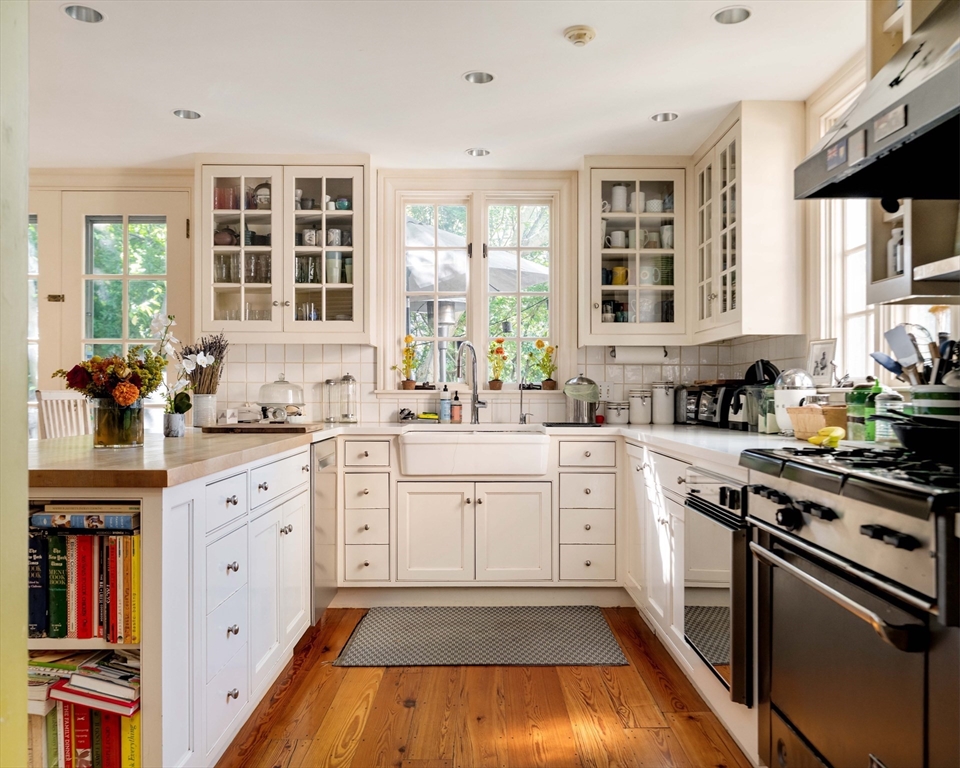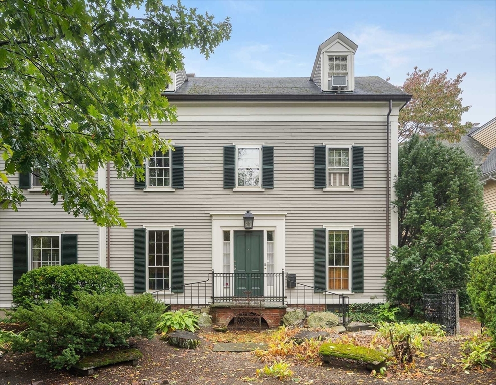 Tucked at the very end of a private way in Harvard Square, 12 Ash Street Place is a rare survivor of old Cambridge character—timeworn, soulful, and warmly inviting. The 1847 home offers gracious proportions, rich moldings, and a meandering layout of generous rooms and quiet nooks. The expansive living room, with walls of windows, has a kind of Cambridge grandeur without gloss—equally inviting for lively gatherings or quiet conversation. A footpath from the front door leads to Harvard Square, a secret passage from this tucked-away solitude to the city’s vibrant bustle. The kitchen, with its classic Garland range, built-in seating, and wisteria-draped deck, captures the house’s spirit: lived-in, unpretentious, and full of heart. The property asks for stewardship—and, yes, some elbow grease—from someone who sees the beauty in what time has shaped. Like a favorite old pair of jeans, it’s comfortably broken-in and impossible to replace. Parking is by custom on the private way.