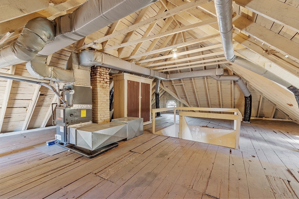 Welcome to this charming & warm 4-bedroom, 1.5-bath home offering 2,016 sq ft of beautiful living space. The spacious living room boasts gorgeous hardwood floors, a wood-burning fireplace, coffered ceilings, and a bright bow window. The large dining room connects to a kitchen with granite counters, stainless steel appliances, extra cabinetry, and a large bow window. Glass doors open to a deck overlooking the fenced in backyard, perfect for relaxation or entertaining. Upstairs, you’ll find four generously sized bedrooms with hardwood floors and a full bath with a linen closet. The open hallway provides space for a reading nook or office. A walk-up attic ideal for expansion potential, and the large unfinished basement offers abundant storage. With Central A/C, two driveways, and a prime location in the Walnut School District near Route 495, NH, and Kenoza Lake, this well-maintained home offers a perfect blend of character, comfort, and convenience. Don't miss out on this timeless Gem!