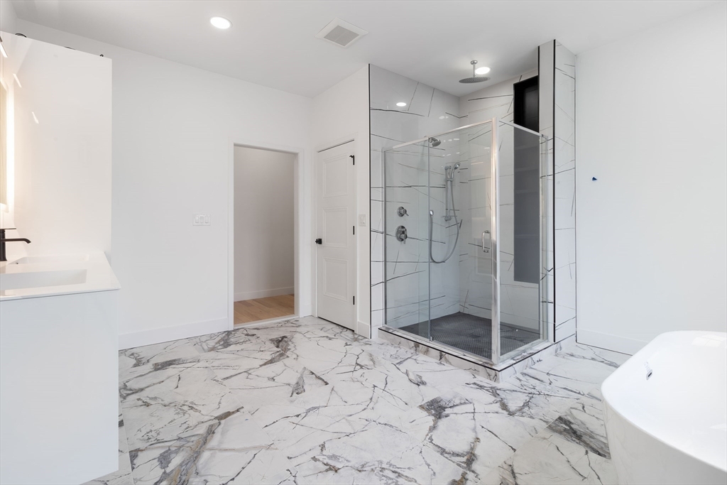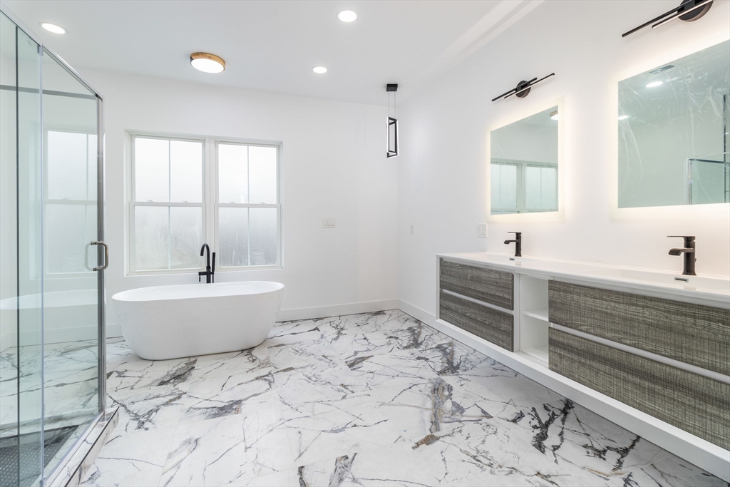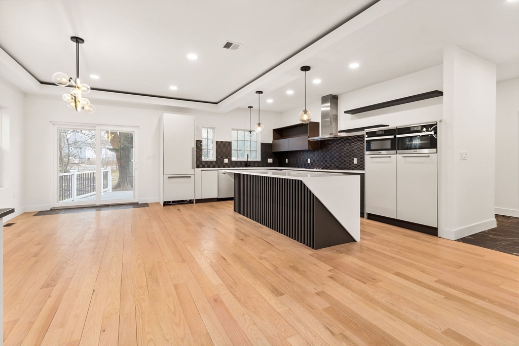 Modern Single Family with Separate Entry Accessory Apartment. This sprawling 4,000 sq ft home is fantastic for multi-generational living. In the main house, the soaring 20ft+ ceiling grand foyer connects to a sleek kitchen with Bosch and Miele custom fridge and appliances. The living area features a modern touch with 9ft floating ceilings, offering open and flexible floor plan. First floor guest bedroom offers private ensuite bath, while the upstairs primary master suite showcases cathedral ceilings, luxurious en-suite bath and ample closets. A spacious family room upstairs is capacious offering additional living space for the family to spread out. Park with ease in the convenient 3-car garage. A fully equipped in-law unit with kitchen provides the ultimate in privacy and functionality. This 1-bedroom haven boasts its own separate entrance, garage space, private deck, kitchen, HVAC system, ERV, high-efficient water system, and dedicated laundry. Ideal neighborhood in town!