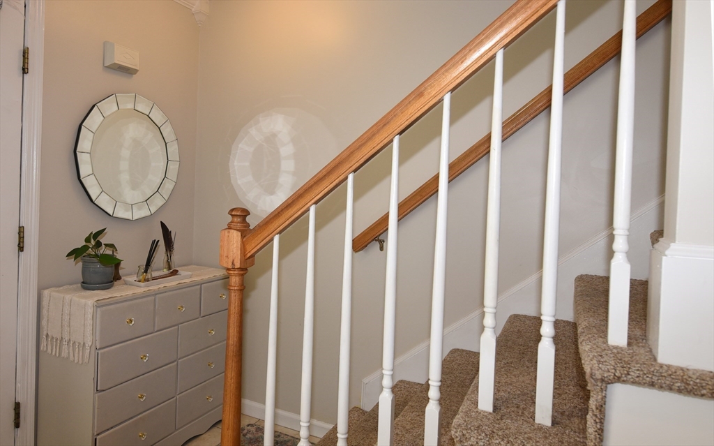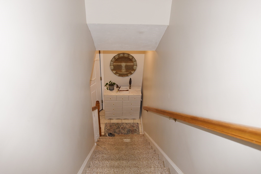 Beautifully maintained townhouse in the highly desirable Boxberry Square community! Nothing to do but move right in and start planning for the holidays. This home features a bright eat-in kitchen with maple cabinets and step right outside to your private deck and patio, a spacious living room with gleaming hardwood floors, and recessed lighting throughout. Berber carpet accents the stairs and second floor. Enjoy peace of mind with a brand new roof (August 2025) state-of-the-art tank-less hot water heater -5 years old and a much desired whole-home water filtration system-4 years old. The large finished basement offers great flexibility—perfect for a family room, playroom, office, or guest space. This well-cared-for complex truly shows pride of ownership. Low condo fee of just $288/month. There is 1 deeded parking spot and 1 floating parking spot in addition to an abundance of guest parking!!Open House Saturday 12-2 & Sunday 11-12: