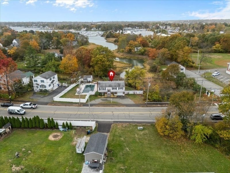 Welcome to this spacious 3-bedroom, 2-bath split-level home perfectly situated along the picturesque Porter River. The main level offers an inviting living room with a fireplace, opening to a dining area with stunning river views and an updated kitchen featuring quartz countertops and stainless steel appliances. Three bedrooms and a full bath complete the upper level.The walk-out lower level provides fantastic flexibility with a large family room with a pellet stove, a second full bath, and a potential fourth bedroom. Additional highlights include central air and a one-car garage for added convenience. What truly sets this home apart is the exceptional outdoor space - fish or kayak right from your backyard, watch sunsets over the river from your deck or lounge by the in-ground pool with plenty of room to relax and entertain. This is your chance to enjoy your very own slice of paradise close to everything the North Shore has to offer!