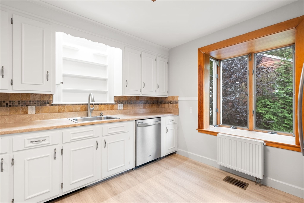 Discover the charm of this delightful Cape-style home nestled on a peaceful dead-end street in the heart of Braintree, MA. This residence offers an unbeatable location with quick access to major roads, supermarkets, shopping, and more, plus it's just minutes from the East Braintree Commuter Rail. Step inside to find a freshly painted interior featuring a dining room and an eat-in kitchen, plus bonus office room that is bathed in natural light. This well-maintained home boasts a high-efficiency boiler, smart thermostats with multiple zones, central AC, an updated second floor bathroom, and gleaming hardwood floors. The ideal layout accommodates purposeful living, complemented by a basement perfect for storage or workshop complete with a full bathroom. Enjoy outdoor entertaining on a spacious, private back deck, and benefit from a newer driveway and numerous updates. A garage adds to the convenience of this lovely home. Don't miss the opportunity to make this inviting property your own!