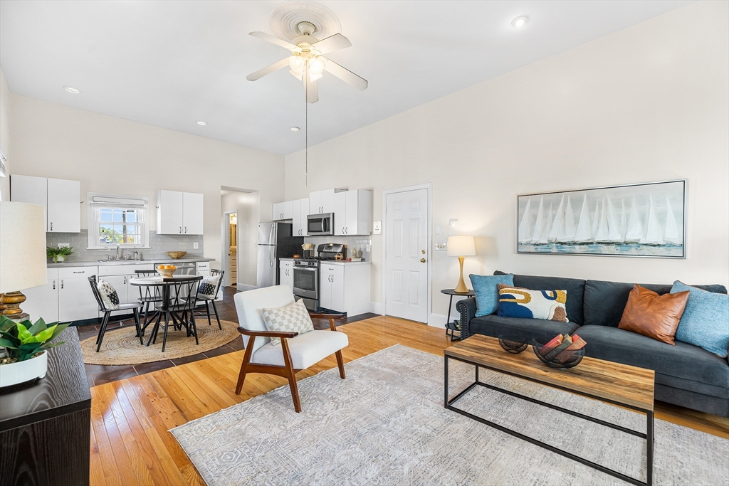 Fantastic 1 bedroom oasis in a thriving harborside neighborhood offering a superb opportunity to build equity instead of paying rent. This 1st floor unit is spacious & sun splashed with super high ceilings & a private outdoor deck. Bathroom has a full size tiled shower with in unit washer/dryer & the open concept kitchen/living room is just perfect with gas fireplace for cozy winter nights ahead. Special bonus is the private rear deck with view of Boston Harbor. Public transit, great eateries & all that Chelsea has to offer you is right at your finger tips. Very high owner occupancy rate. Self managed association with a low condo fee. Great off street parking. Pets are welcome too! *****Seller willing to offer buyer incentive — including potential rate buy-down or closing cost credit.