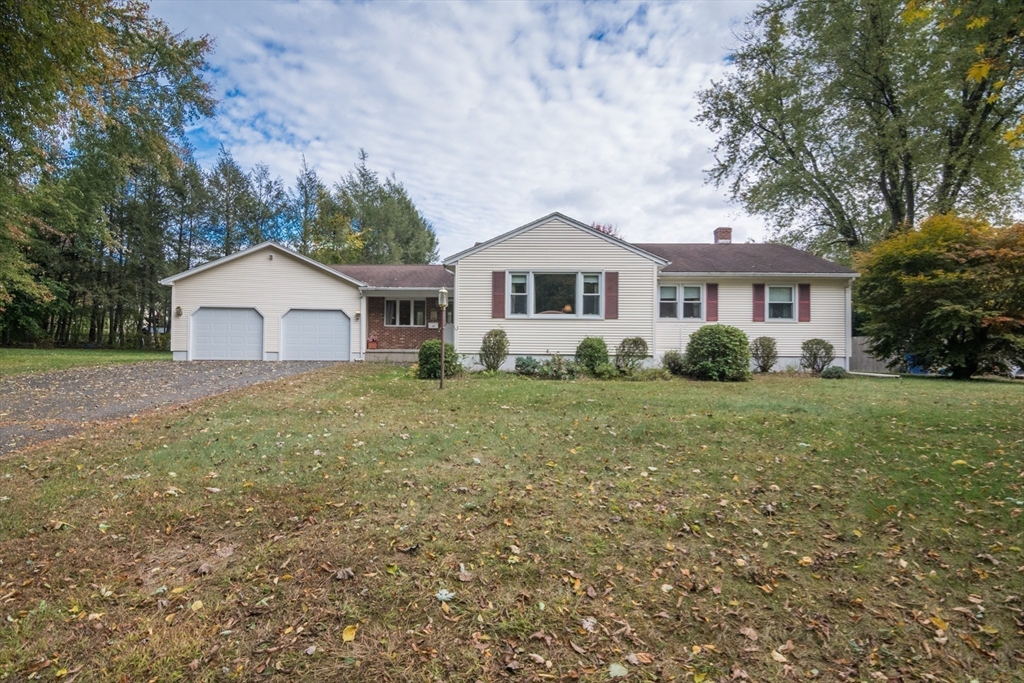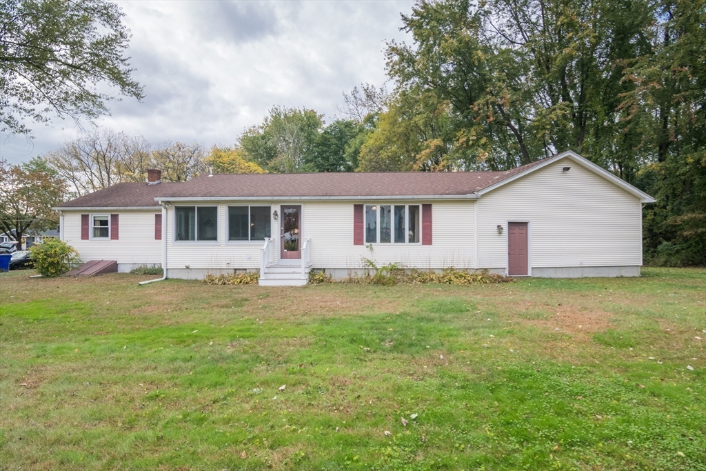Fantastic location is the host for this spacious ranch at end of no-through street. As you enter, you are greeted by a very large family room addition with cathedral ceilings that opens to the eat-in kitchen. An atrium door leads you to a bright sun room with vaulted ceiling & newer windows- the perfect space to sit and relax.The large living room has wood floors and an expansive picture window. All three bedrooms are generously sized with double closets and feature wood floors - one has carpet with wood underneath (APO). The lower level has a finished rec room and built-in bar. There is plenty of room to entertain inside & out - sitting on almost a half acre abutting conservation land. The homes double lot offers wood views, a tranquil setting yet close to area amenities. Additional features include a 2 car garage & freshly power washed vinyl siding. This home has been nicely maintained by the same family for many years and is ready for its next chapter. Don't delay!