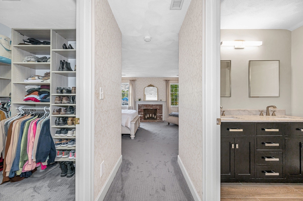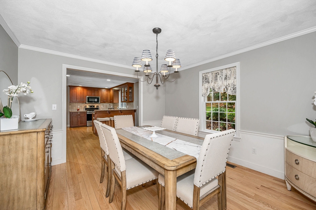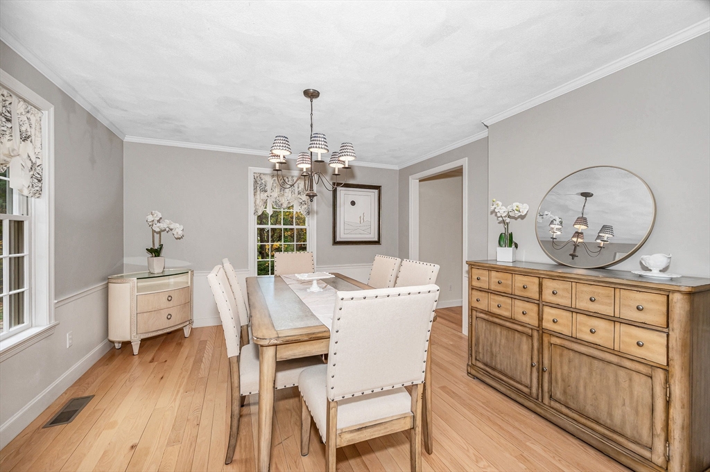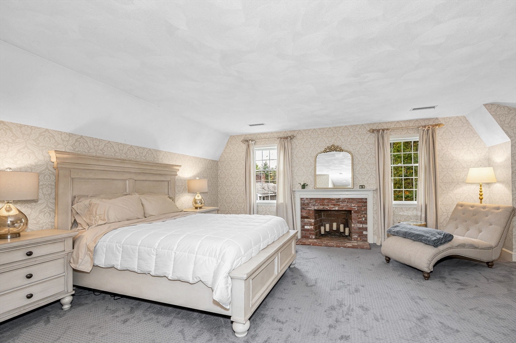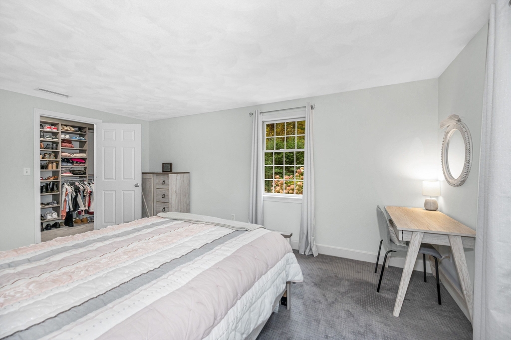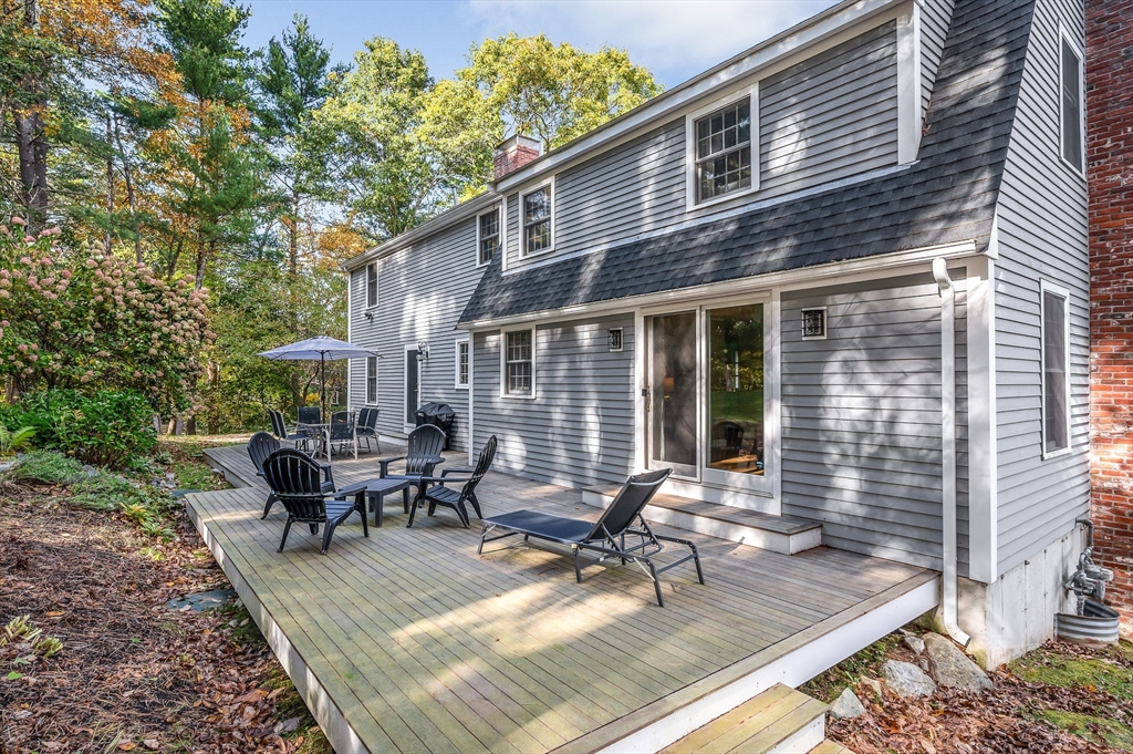 Byfield area of Newbury, tucked away in a private neighborhood yet convenient to schools is where you will find this lovely and meticulously maintained home. As you enter through the main entrance you will immediately feel the warmth of this home. The first floor offers a sunken living room with fireplace, formal dining a large kitchen with Cherry cabinets, granite countertop, tile backsplash, stainless steel appliances, breakfast peninsula and exit to oversized deck and private back yard, Also on the first floor is the laundry, half bath and a large family room with fireplace, hardwood floor and sliders to deck. The second floor is complete with the main bath and 4 large bedrooms including the primary with a fireplace, large walk in closet and private bath with double vanity, tile floor and tub with tiled shower. The basement is a perfect au pair, in-law or just great added space for the family with a full bath, home office and recreation room. Other features include, A/C & hardwood.