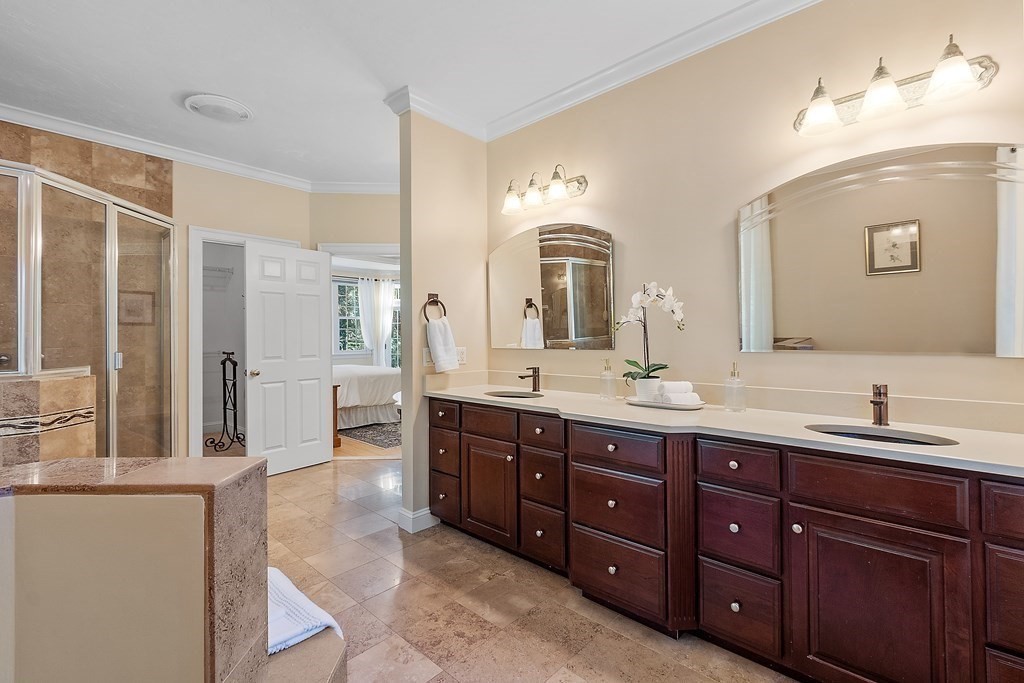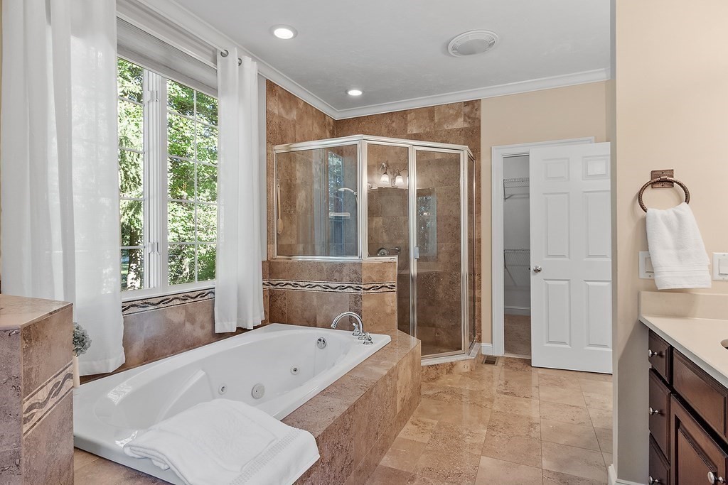 Stunning Colonial nestled in one of Bolton's most sought-after neighborhoods exudes timeless elegance & Contemporary flair. A luxurious foyer flanked by formal living & dining rooms brimming w/meticulous custom details & handcrafted built ins welcomes you to this special home offering a unique blend of classic architecture & modern comfort. A spacious gourmet kitchen features granite countertops, plentiful cabinetry,& notable appliances including Subzero refrigerator, Wolfe cooktop,& dual ovens & flows seamlessly into the striking fireplaced family room w/soaring ceiling & an expansive wall of windows flooding the room w/natural light. Unwind in the 1st floor main suite w/walk-in closets & spa-like bath. The 2nd level offers 3 generous bedrooms; one ensuite, & office. An expansive finished lower level offers additional versatile living spaces as needs change. Enjoy this breathtaking property offering park-like grounds complete w/walking trails, mature plantings, & stone walls.