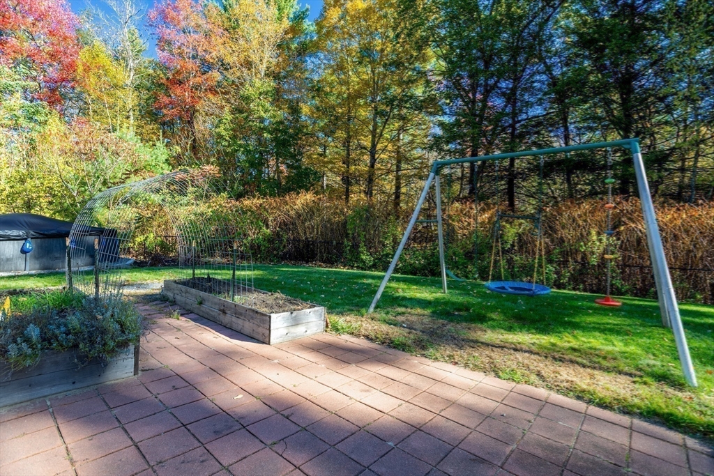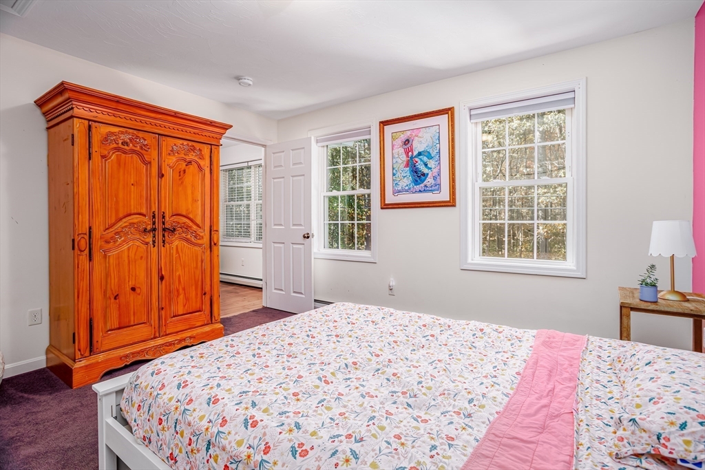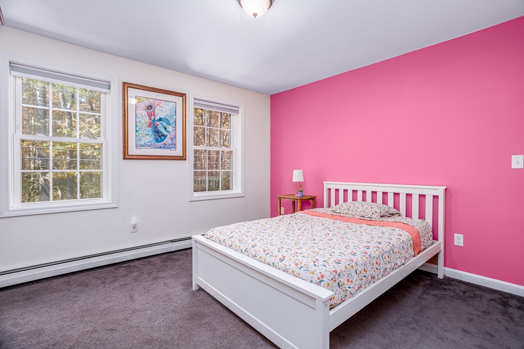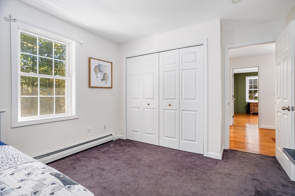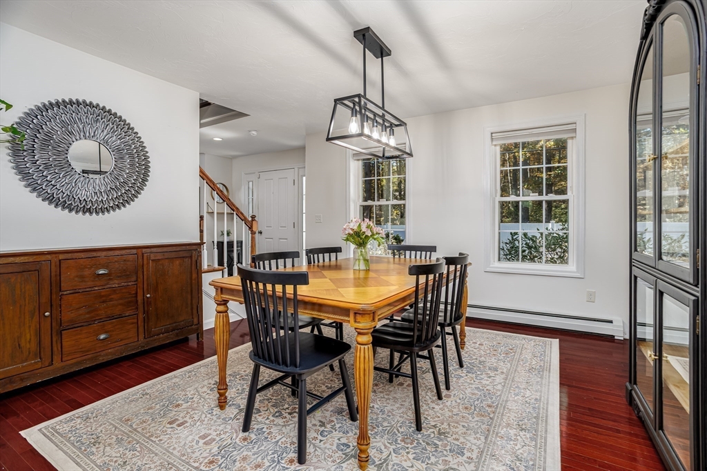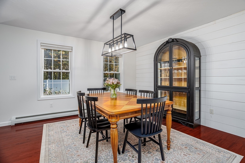Tucked away on a quiet country road, this beautifully maintained 3-bedroom, 2.5-bath home offers privacy, charm, and convenience. Set on over 4 acres abutting conservation land, enjoy wooded trails and a gentle brook right from your backyard. Inside, the sunny living room features hardwood floors and a cozy propane fireplace. The kitchen boasts granite counters, ample cabinetry, and a gas cooktop. The back-to-front primary suite offers a bright retreat with private bath and custom walk-in closet, while two additional bedrooms feature large closets and easy access to a full bath. Relax or entertain on the expansive easy maintenance composite deck overlooking the fenced-in yard with a new irrigation system. A partially finished basement adds bonus space for a gym, office, or playroom. You will be blown away by the spaciousness of the rooms. Plenty of space for activities both inside and out! New wall mounted boiler. Energy efficient home. Close to area amenities and routes.