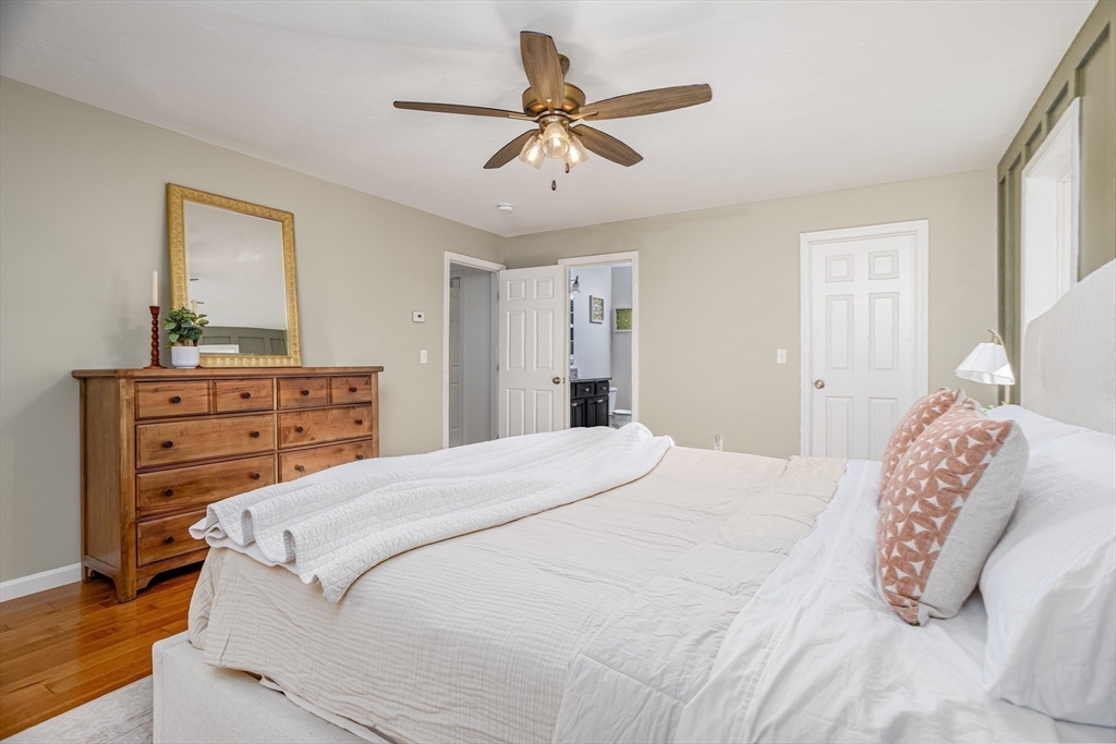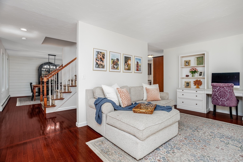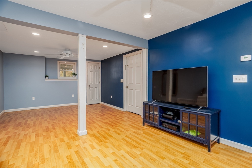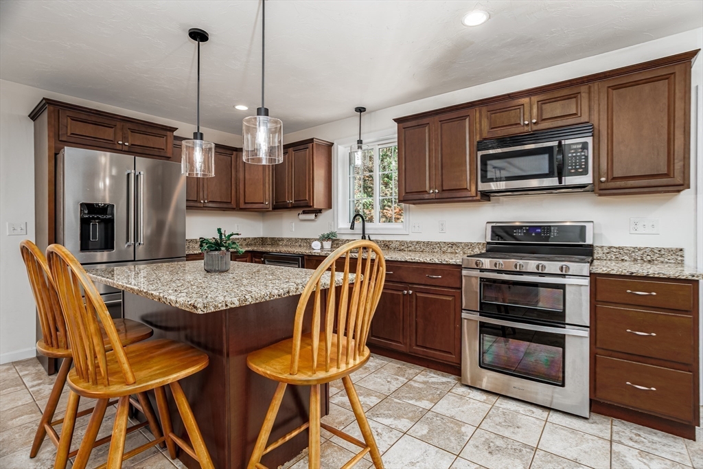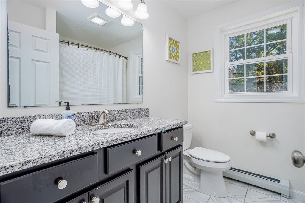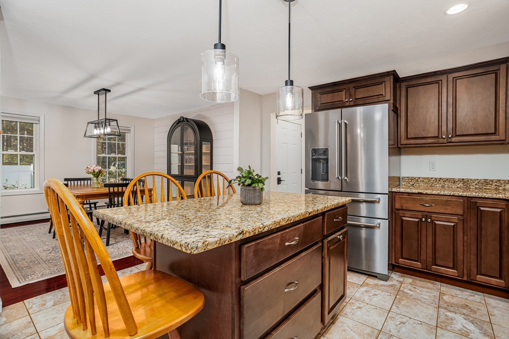 Tucked away on a quiet country road, this beautifully maintained 3-bedroom, 2.5-bath home offers privacy, charm, and convenience. Set on over 4 acres abutting conservation land, enjoy wooded trails and a gentle brook right from your backyard. Inside, the sunny living room features hardwood floors and a cozy propane fireplace. The kitchen boasts granite counters, ample cabinetry, and a gas cooktop. The back-to-front primary suite offers a bright retreat with private bath and custom walk-in closet, while two additional bedrooms feature large closets and easy access to a full bath. Relax or entertain on the expansive easy maintenance composite deck overlooking the fenced-in yard with a new irrigation system. A partially finished basement adds bonus space for a gym, office, or playroom. You will be blown away by the spaciousness of the rooms. Plenty of space for activities both inside and out! New wall mounted boiler. Energy efficient home. Close to area amenities and routes.