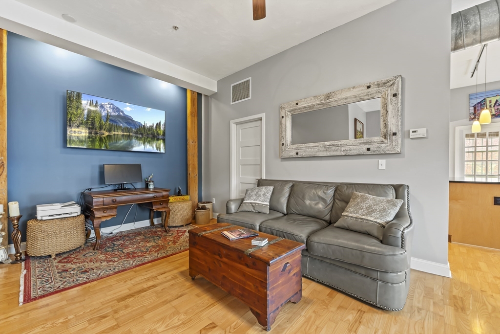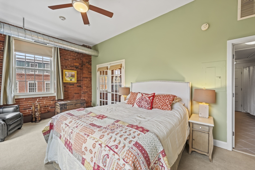 Step inside and feel the blend of history and heart in this 3rd floor condo. Sunlight pours through oversized windows, warming the exposed brick and timber beams that give this corner unit its soulful charm. Gleaming hardwood floors accent the living room and kitchen, creating an inviting flow for everyday living. The kitchen, anchored by granite counters and a generous island, sets the stage for morning coffee or evenings with friends. The bedroom offers a quiet retreat, bright and peaceful by day, cozy and calm by night. Enjoy in-unit laundry, plenty of storage inside w/additional space in the basement, elevator access, and an assigned parking space with ample guest parking. The pet-friendly complex has plenty of green space and features a gazebo area complete with chairs, tables, and grills for residents to gather and unwind. You’ll also enjoy private access to the Back River and Clarks Pond, all just moments from Amesbury’s vibrant downtown shops, cafés, and artful energy.
