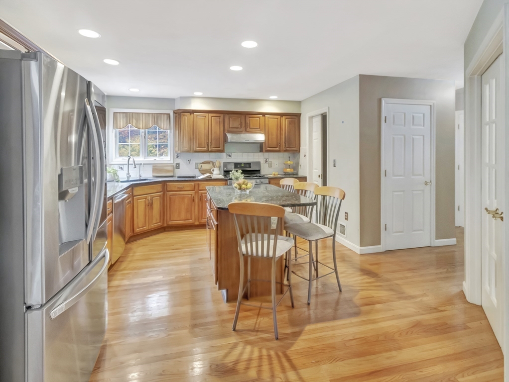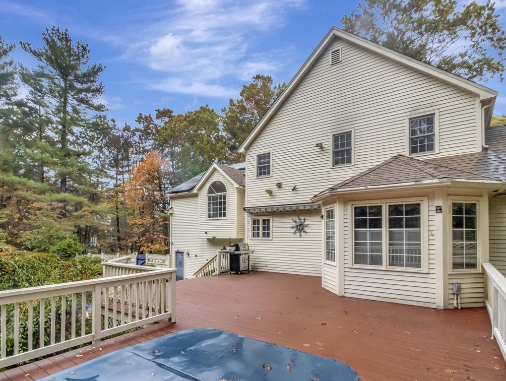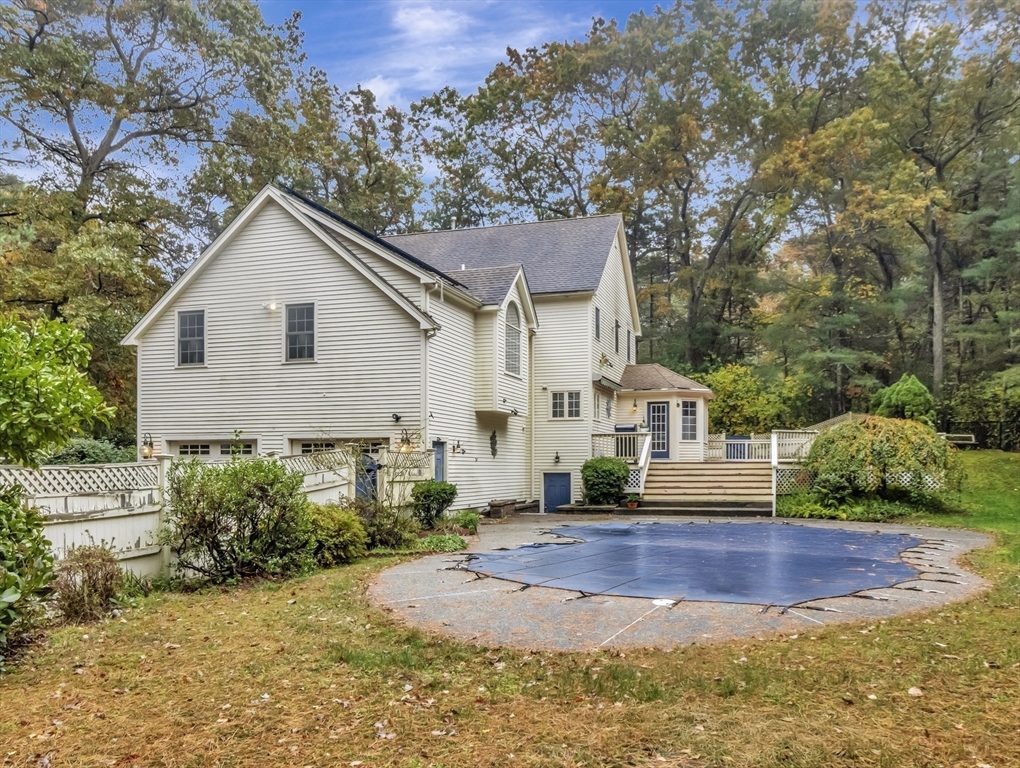 Elegant and Stately Colonial in a Premier Neighborhood. Discover timeless elegance in this stately 4-bedroom, 3.5-bath home offering exceptional living space and refined architectural detail. Graceful columns frame the inviting living room centered around a cozy woodstove, while the open floor plan provides the perfect blend of sophistication and comfort. The spacious kitchen and dining areas flow effortlessly to an expansive deck overlooking a tranquil, fitted with a 2 year old hot tub, and a backyard with an inground pool—ideal for summer entertaining. The finished basement that has a walk out to the backyard adds more space for entertaining., with a wet bard and beverage cooler, and full bath. There is not much more you could ask for. Thoughtfully designed with classic charm and modern function, this home sits proudly in one of the area’s most sought-after neighborhoods, offering privacy, beauty, and a serene lifestyle just minutes from local amenities.