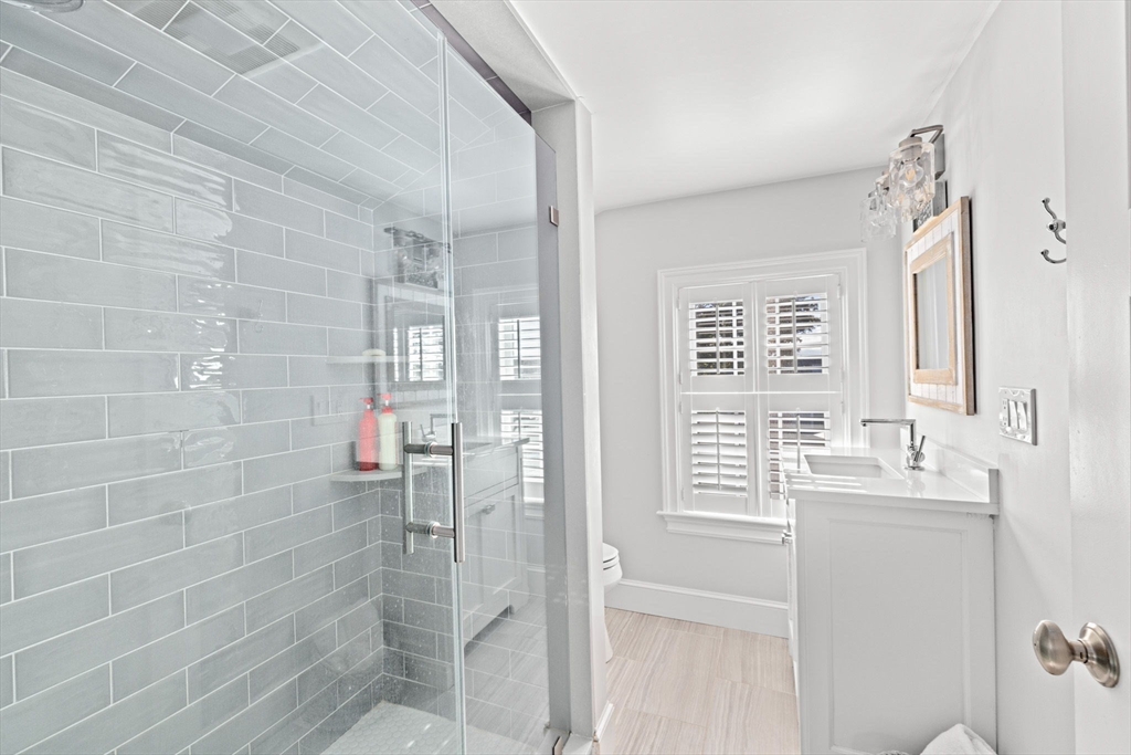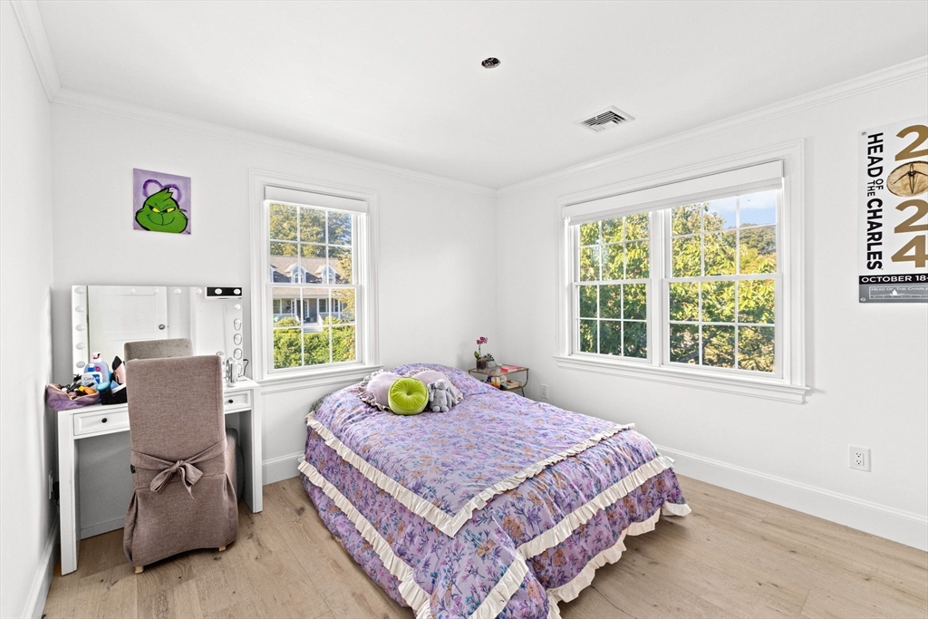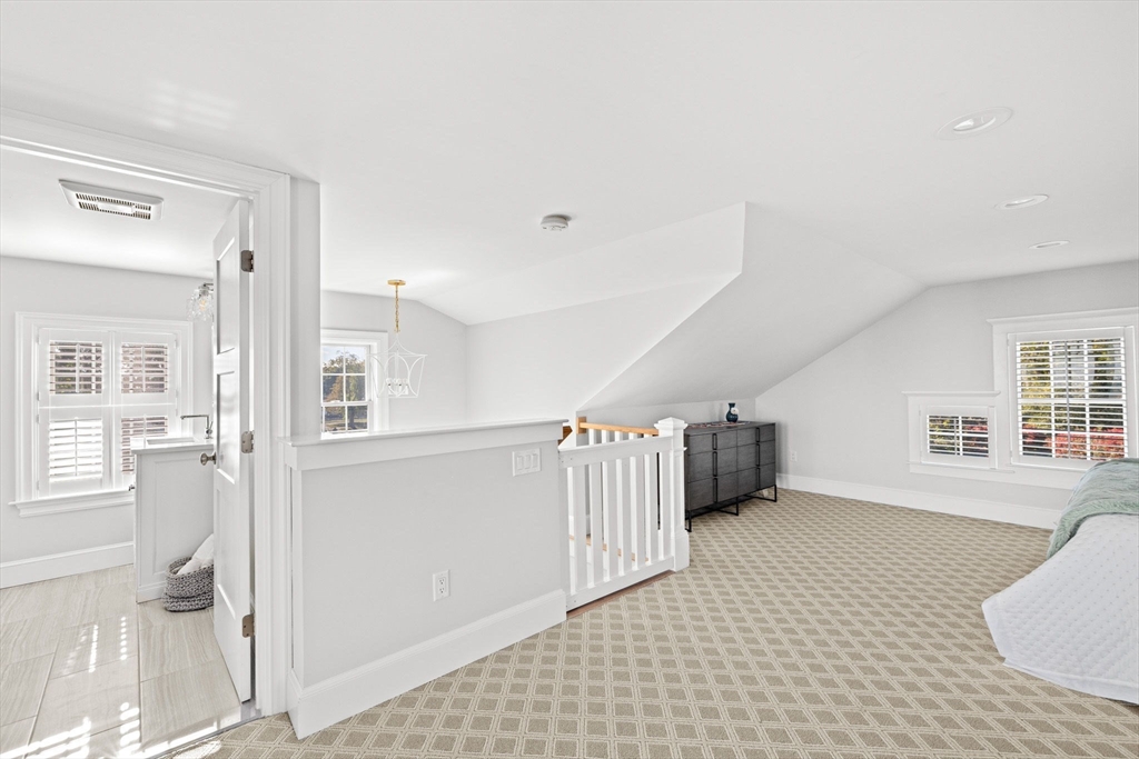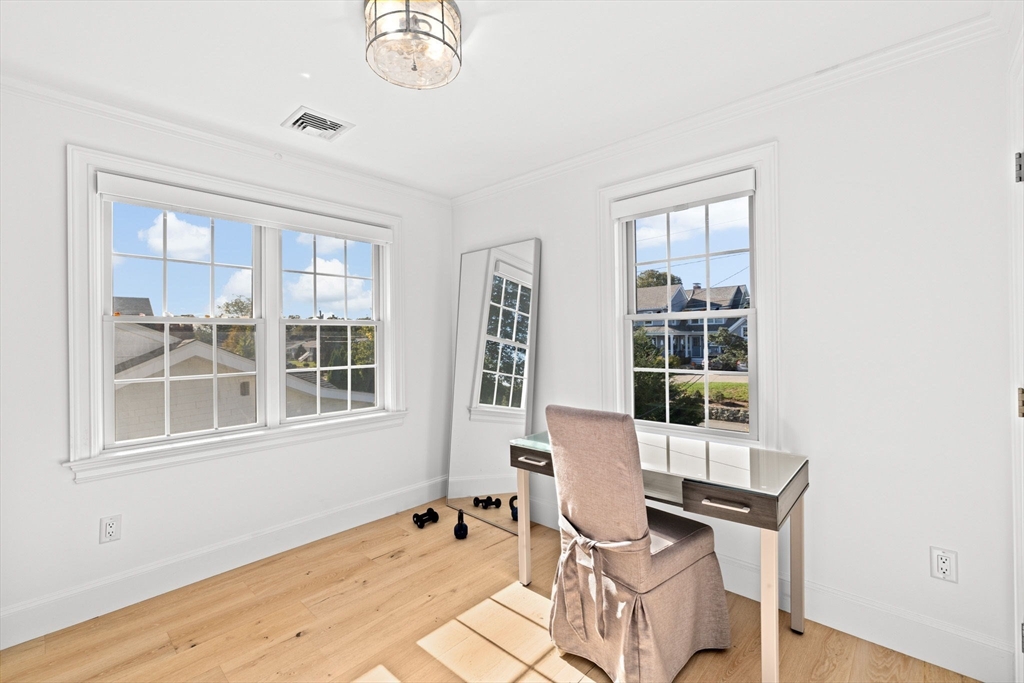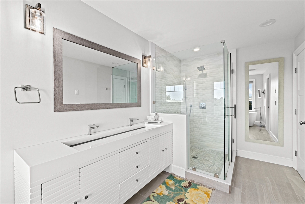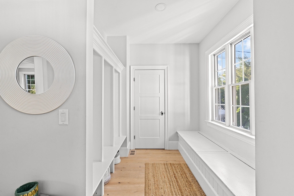 Fabulous WATER VIEWS in this 6 year young contemporary Farmhouse in sought after CROW POINT. The OPEN floor plan everyone wants...where the Kitchen, Dining and Living room flow seamlessly. There are also custom architectural details inc. 9' ceilings, oversized windows and beautiful coffered ceilings. Classic white kitchen w/farmers sink, island, quartz countertops, Wolf stove and Thermador refrigerator. Nice sized office is tucked away in the front of the house and the mudroom with cubbies provides a great drop zone upon entry. The second floor offers 3 Bedrooms and 2 full baths inc. a gorgeous primary suite w/stunning views, a large walk in closet and luxurious bath. VERSATILE space on the 3rd floor w/a full bath and a balcony/deck to enjoy the BEST VIEWS in the house! The lower level is also finished, w/custom built-ins, walk in closet and another WFH space. Fabulous deck overlooking the level, fenced in back yard. Town sewer and Gas. ACCESS to the WATER via Kimball Beach Dock Assn!