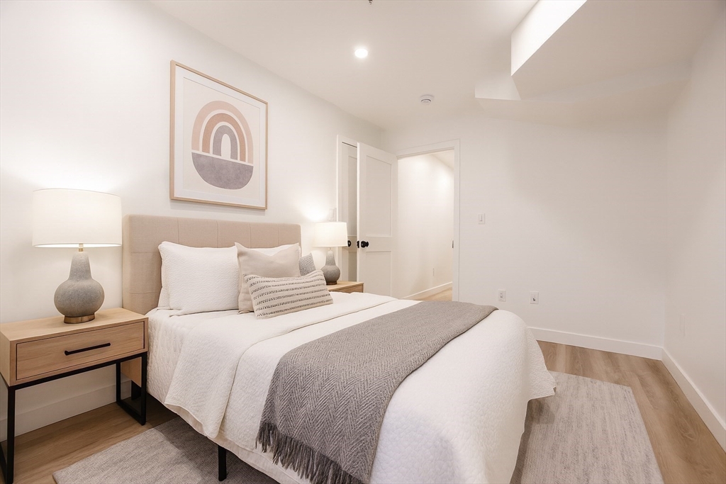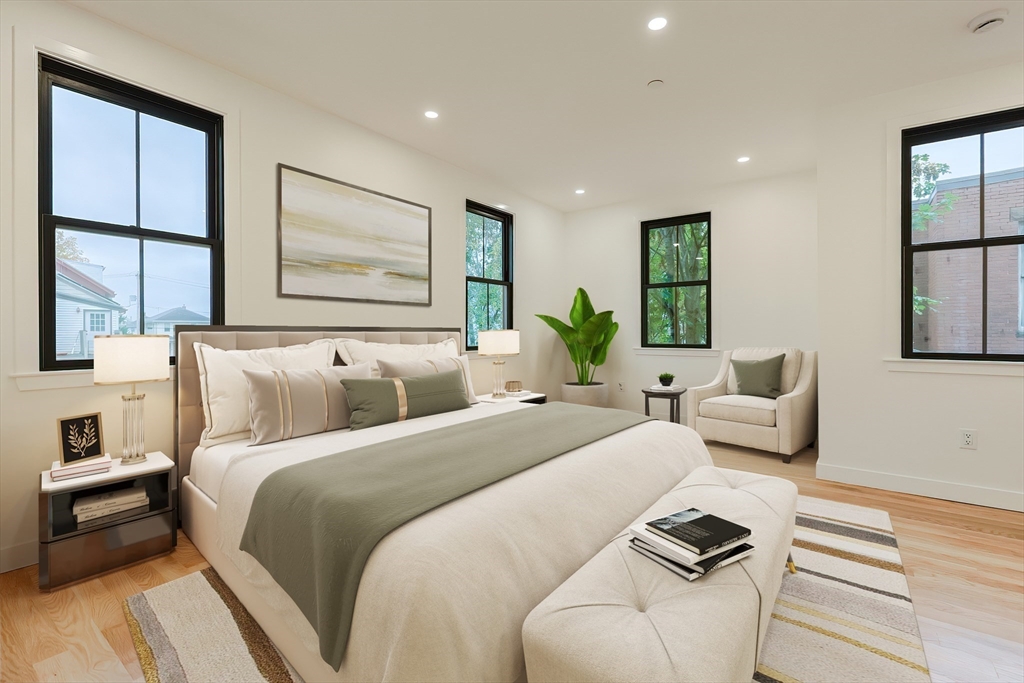 Unit Two of the Residences at Royall Patk is now available! Come visit this completely renovated and like new construction tri-level property in a prime Medford location within walking distance to Tufts Univ. and across from the historical Royall House grounds. Floor plan boasts the unique feature of having a potential bedroom and bath on each floor. Main level consists of a spacious living room/dining room area, quartz accented stainless steel kitchen, & a bedroom or home office opportunity, all opening to a rear deck & yard. Upper-level sports a terrific primary bedroom suite highlighted by a glowing designer bath. More space is found on the lower level with a family room, bedroom/office, full bath, laundry, & ample storage space. Central air, gas heat, hardwood floors, Hardie Plank Siding, off street driveway parking, and welcoming outdoor space, enhance the value. Walk to the Tufts Green Line stop and Medford Sq with easy access to Rte. 93, Assembly Row and Downtown Boston.