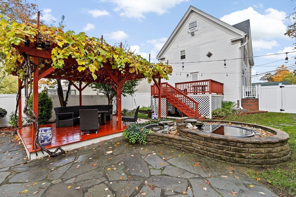 Experience the perfect blend of style and functionality in this fully renovated home for sale. The open-concept layout showcases rich hardwood floors, gas heat and central air. A bright modern kitchen with quartz countertops, stainless steel appliances, opening into a formal dining room with a custom-built bar—ideal for entertaining. Upstairs, four spacious bedrooms offer space and ample storage. Large family room and large bonus room on the third floor, perfect for playroom, office or additional bedroom. Step outside to your private backyard oasis featuring a pergola-covered deck, outdoor kitchen, koi pond and cozy fire pit lounge—all surrounded by full privacy fencing. Close to area amenities and public transportation. This move-in-ready home is the ultimate retreat for today’s modern lifestyle. No showings until open house Sunday, Oct 26th 11am-1pm