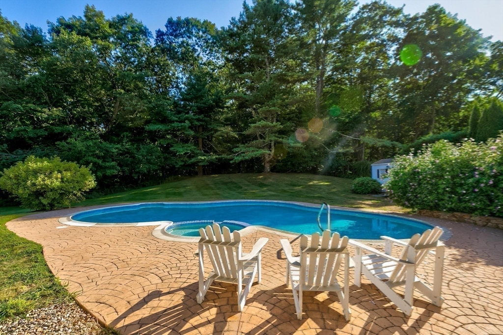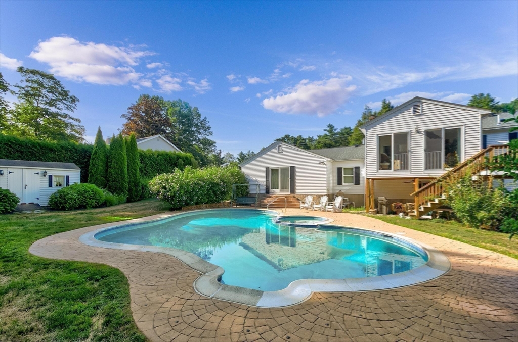 A home for all seasons! This unique 1.28-acre retreat checks every box — 3 bedrooms, 3 full baths, multiple living spaces, and an outdoor paradise. Your private, fenced property is an entertainer’s dream with a gorgeous kidney-shaped pool and spa, plus a covered patio for those who prefer the shade. Who needs a summer vacation away when you have it all right here? Inside, the bright main level features a spacious living room with a focal fireplace and a granite-topped kitchen. You’ll love the newer Sunroom with deck and stairs down to the pool. On the opposite side, beyond the tiled breezeway, a spacious family room overlooks the pool with sliders out. The lower level offers more flex space with a playroom, home office, storage room, kitchenette, laundry facilities, and a utility room. An extra is the Generac generator. For your peace of mind. New roof 2025. All this in Topsfield with its charming downtown, Hood's Pond Beach, New Meadows Golf, and easy commute via 195 to Boston or NH.