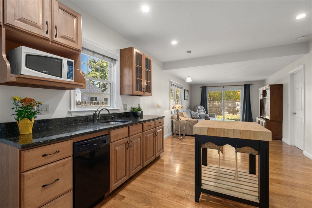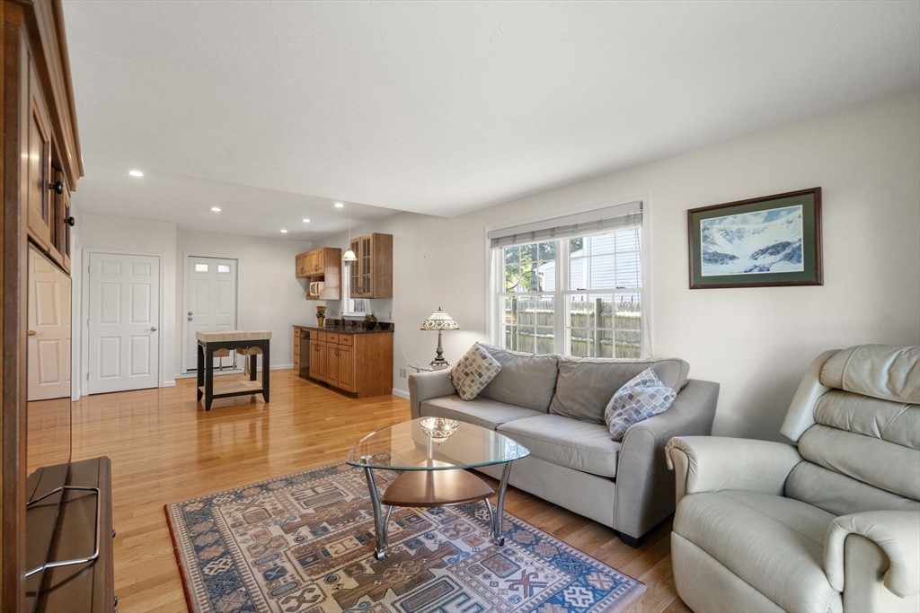 A Home That Brings Everyone Together! This modern home offers two separate living spaces—perfect for an IN-LAW, AU PAIR, HOME OFFICE, or RENTAL INCOME. The main level features vaulted ceilings, open-concept living and dining area, and a sunny eat-in kitchen with architectural details that create an inviting space. The sunroom, with walls of windows, gleaming floors, a cathedral ceiling, and panoramic views, is the showpiece of the home—flowing seamlessly onto a maintenance-free deck that extends living outdoors. 3 spacious bedrooms include a serene primary suite, a remodeled bath, and hardwood floors throughout. The lower level, with its own entrance, offers a living room, kitchenette, bedroom, laundry, and full bath—one-level living, suitable for a multi-generational family or guests. Huge unfinished basement with private entrance—blank canvas for expansion or personal projects. Sought-after Saxonville location. One Home, Endless Possibilities. Love Where You Live!
