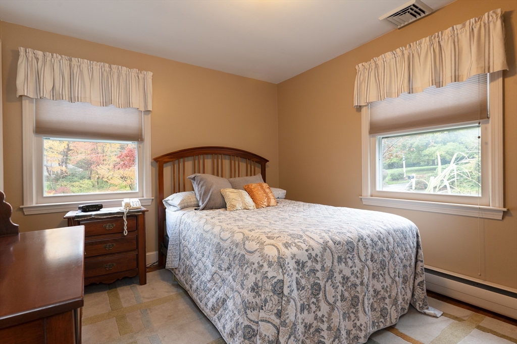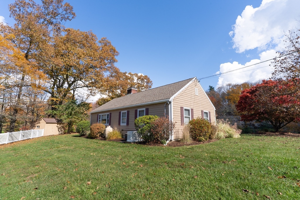 Beautiful ranch in one of Sturbridge’s most desirable neighborhoods! This 3-bed, 1-bath home offers a bright, spacious living room with a large picture window, hardwood floors, and a cozy fireplace. The kitchen opens to a dining area with easy access to the fenced backyard, perfect for relaxing or entertaining. Enjoy additional living space in the finished lower level plus a large storage room. Maintenance-free vinyl siding, central air, and a newer built-in Generac generator provide comfort and peace of mind. Great curb appeal on a lovely corner lot! 2 car attached garage, paved driveway, town water & sewer! Conveniently located near major routes, MA Pike, 84, 20 & 9 and in the highly rated Tantasqua school district. Quick close ok! See the attached 3D matterport video.