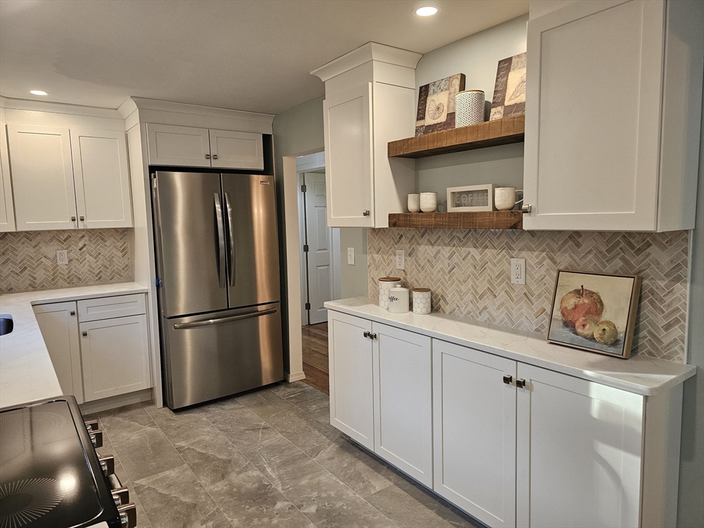 Welcome to this beautiful, light-filled home! Buyers will love that almost everything has been tastefully updated so they can just move in and enjoy! Renovations include a new kitchen with a coffee bar, quartz countertops, marble tile backsplash and brand new stainless steel appliances. The kitchen opens up to a lovely dining room which overlooks the spacious backyard and patio. The large living room is great for entertaining and there is also a newly finished family room in the basement for more enjoyment space. The bathroom has also been completely updated and features a gorgeous tile floor, tiled tub surround, and quartz sink top. More updates include a brand new 3-bedroom septic system, new light fixtures and electric panel updates, fresh paint throughout, new vinyl siding, refinished hardwood floors, new doors both inside and out, and much more. All this and located on a quiet side street just minutes to shopping, restaurants, highway access, and beautiful Salisbury Beach!