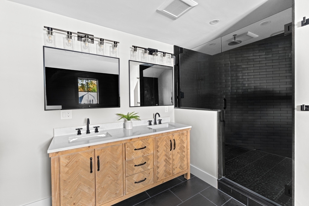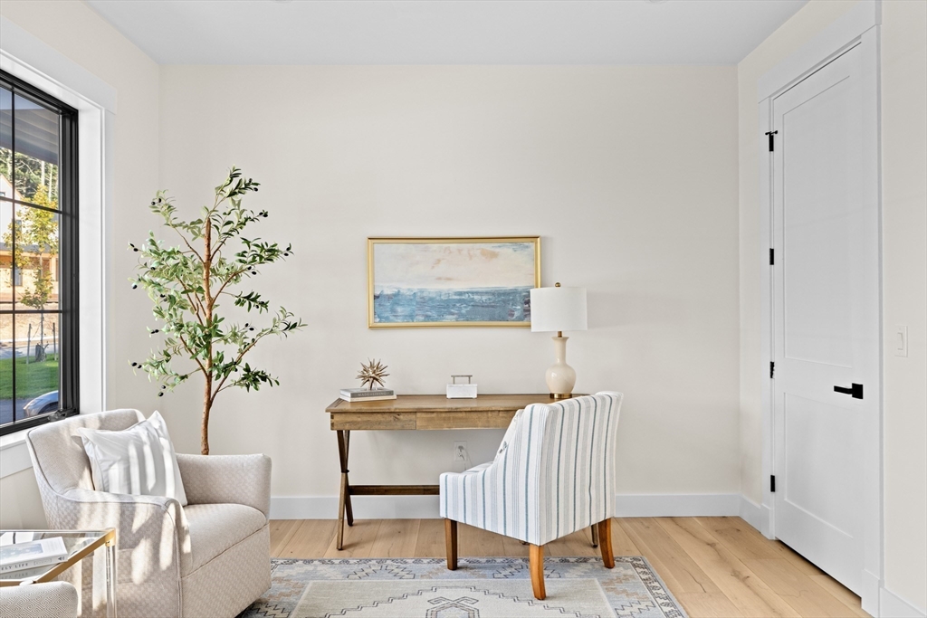 Set on a brand-new cul-de-sac in Duxbury’s coveted Millbrook neighborhood, this newly constructed residence exemplifies modern coastal elegance and timeless craftsmanship. Sun-filled living spaces feature white-oak floors, custom millwork, and an open layout that flows seamlessly from the designer kitchen—complete with Thermador appliances, quartz counters, and walk-in pantry—to the inviting living room with its striking stone fireplace. A private first-floor office offers a quiet retreat, while a separate guest suite with its own entrance and full bath is ideal for visitors or an au pair. Upstairs, the serene primary suite is accompanied by two additional bedrooms, a full bath, and a terrace overlooking the professionally landscaped grounds. With over 4,000 sq. ft. of living space and a two-car garage, this home defines sophisticated coastal living in one of Duxbury’s most desirable settings.