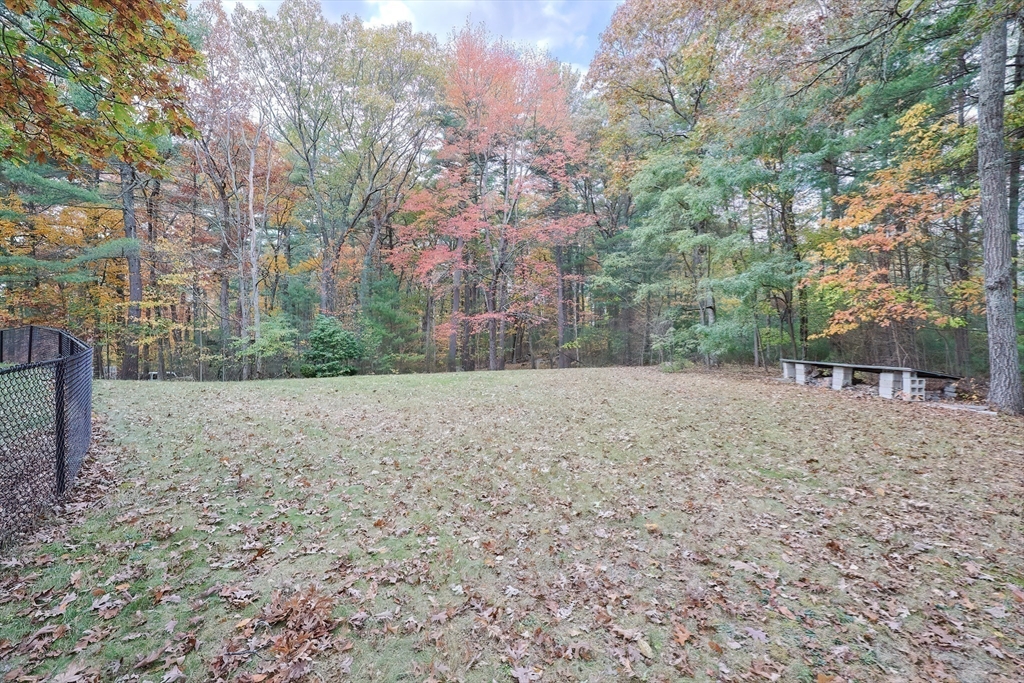 Suburban Lifestyle:Nestled in a peaceful wooded setting, this 3-bedroom, 1.5-bath Saltbox Colonial combines classic charm with thoughtful updates. Built in 1989 with durable post & beam oak timber construction, the home features wide 12-inch pine floors and a warm, open layout. The updated kitchen offers quartz slab countertops, high-quality Shaker cabinets, and an under-counter microwave. The inviting main level includes upgraded lighting and opens to a brand new composite deck overlooking the trees—perfect for relaxing or entertaining. Upstairs are three comfortable bedrooms and a full bath. The lower level features a family room with new laminate flooring, built-in oak storage, and an office nook. Additional updates include a new walkway, Nest smart thermostats, Kwikset digital lock, professional radon remediation, and custom top-down/bottom-up window treatments. A perfect blend of privacy, character, and modern comfort in desirable Holliston.