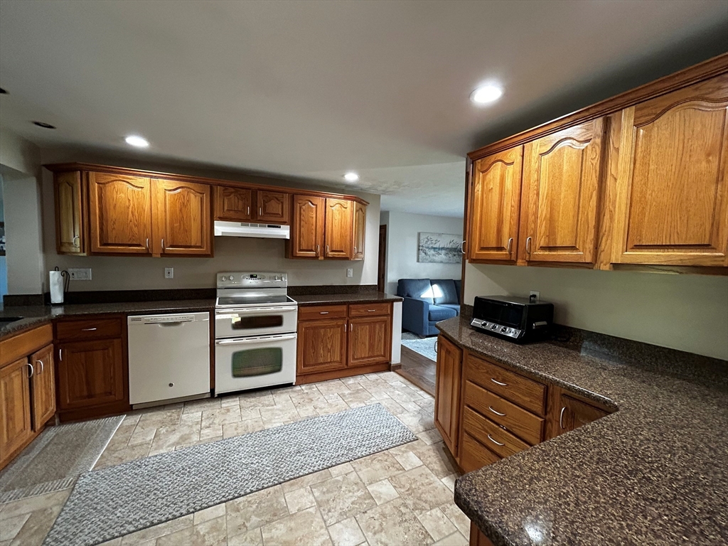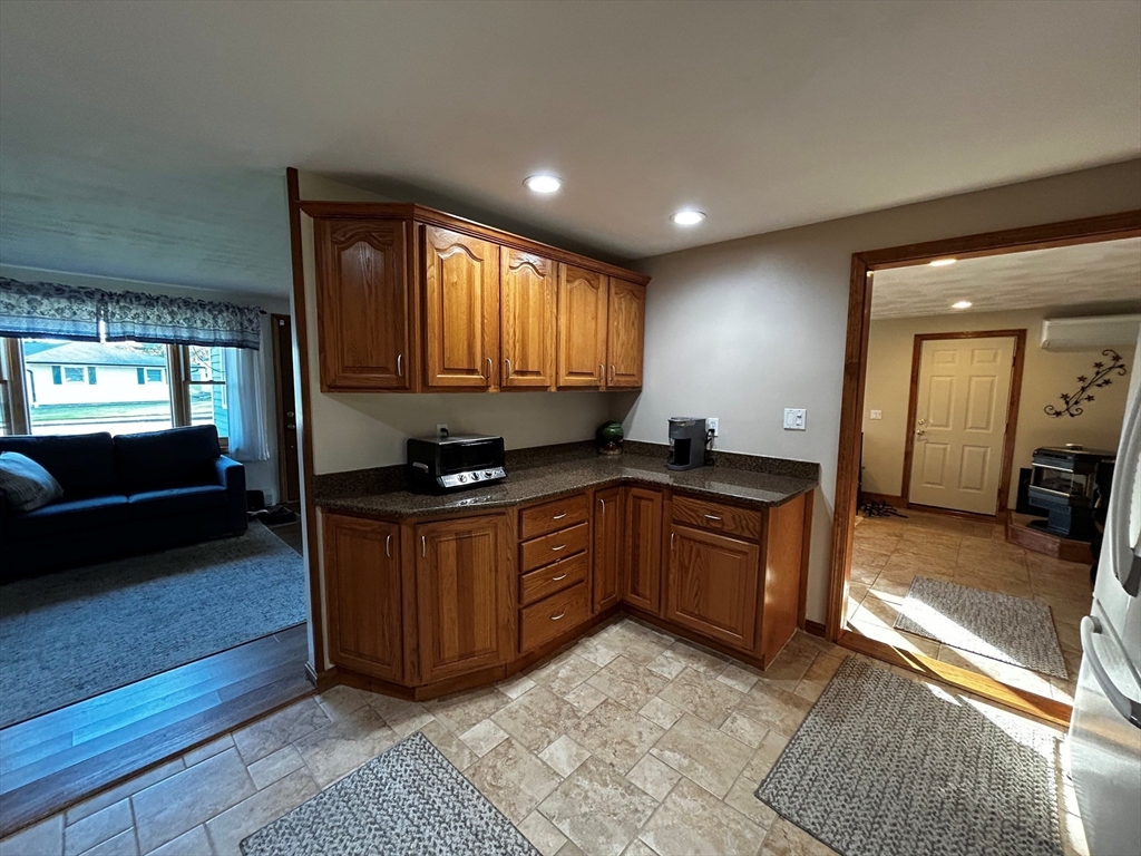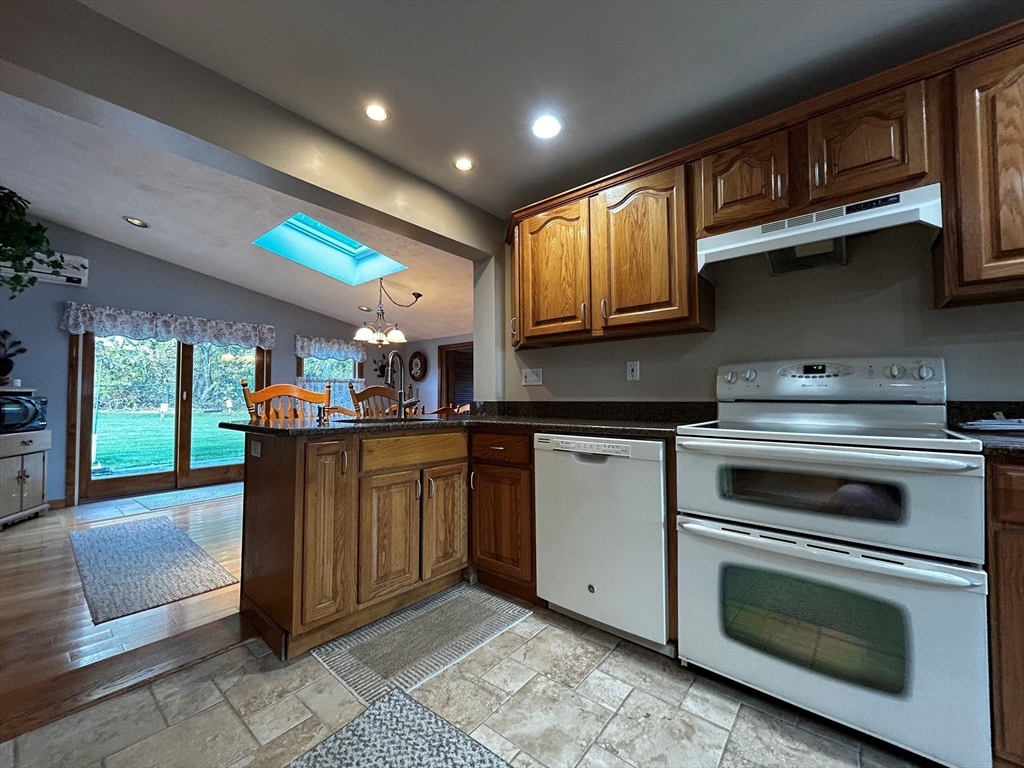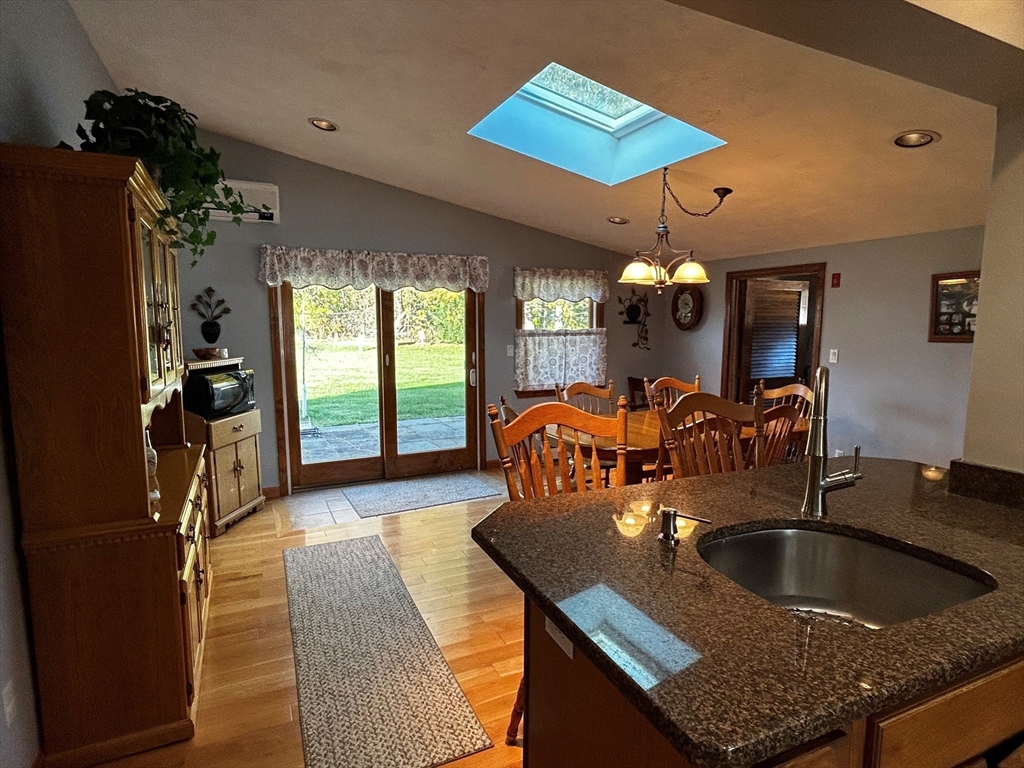 Great opportunity to own in the highly desirable Woodvale neighborhood at this spacious ranch style home featuring nearly 2,000 sf of living space. This home includes an open concept kitchen with granite counters, recess lighting and tile flooring which leads to the dining room with vaulted ceiling, hardwood flooring and a sliding glass door that provides access to the patio and beautiful backyard. Enjoy the holiday season in the family room with pellet stove, tile flooring and french door. The primary bedroom features a walk in closet and ensuite half bath. There are also two other bedrooms plus a nursery or possible office with skylight. Updated full bath with tile flooring and decor. Other recent updates include multiple mini split systems for heat and air conditioning, windows throughout the majority of the home, sliding glass door, hot water tank, and electrical panel. OPEN 10/25 and 10/26 from 1130 to 100.