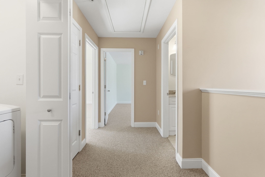 Spacious & Move-In Ready! Welcome to Ava Estates, where comfort meets convenience in this beautifully cared-for townhouse. The main level welcomes you with an open floor plan designed for today’s lifestyle—featuring high ceilings, abundant natural light, and a warm, inviting atmosphere. The living area centers around a gas fireplace and connects easily to a modern kitchen and dining space, with sliding doors opening to a private deck—perfect for morning coffee or evening gatherings. Upstairs offers two spacious bedrooms, each thoughtfully designed for privacy and comfort. The primary suite includes its own full bath, while a second full bathroom and laundry area complete the level for ultimate functionality. The finished lower level expands your options with flexible space—ideal for a home office, fitness area, or family room—with direct walk-out access to the backyard. Additional perks include central air, gas heat, generous storage, and an attached garage with interior access.