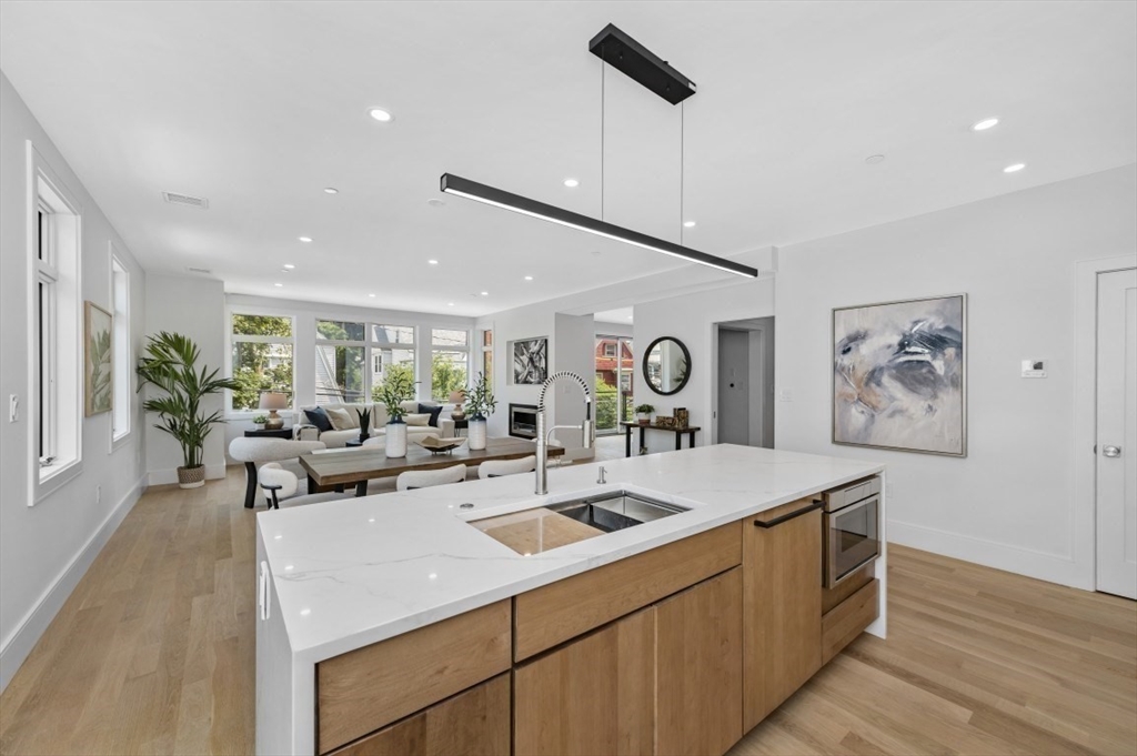 This spectacular new-construction floor-through is flooded with light from all sides, and offers the perfect blend of luxury, modern elegance, and functional space! It features high ceilings, beautiful white oak floors, a fireplace, heated bathroom floors, two balconies, and a gorgeous chef’s kitchen with Thermador appliances, ample counter space, and a walk-in pantry. It also boasts direct private elevator access, two-car EV-ready garage parking, and extra storage in the basement. The primary suite has two walk-in closets, corner windows, and a spa-like bath. And the fourth bedroom is adjacent to a full bathroom in a separate space behind a pocket door, so it can also function flexibly as an office, den, or private guest suite. With a state-of-the-art access system that grants entry via code, phone, fob, or facial recognition, and set on a lovely quiet street steps from everything Coolidge Corner & Brookline Village have to offer, this is premier living at its finest!
