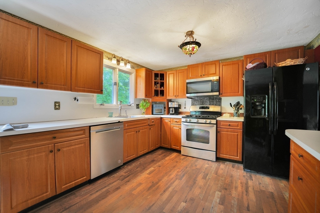 MOTIVATED SELLER!! **1 year home warranty offered to buyer at closing** Spacious 4-bedroom, 3-bath raised ranch offering versatile living space and endless potential. The main level features a generous layout, ready for your personal updates to make it shine. The lower level includes an additional bonus space perfect for a family room, home office, or recreation area featuring a cozy wood burning fireplace insert. A separate apartment with its own entrance, full bath, and kitchenette. An excellent opportunity for additional rental income, extended family use, or guest accommodations. A smart way to offset expenses while adding long-term value.Outside, you’ll find a large newer constructed deck running the length of the home overlooking gorgeous grounds, an amazing horse/animal paddock ideal for a variety of animals, gardens,and so much more. In addition to a 2-car detached garage, ideal for storage, hobbies, or workshop space. This property offers endless opportunities!