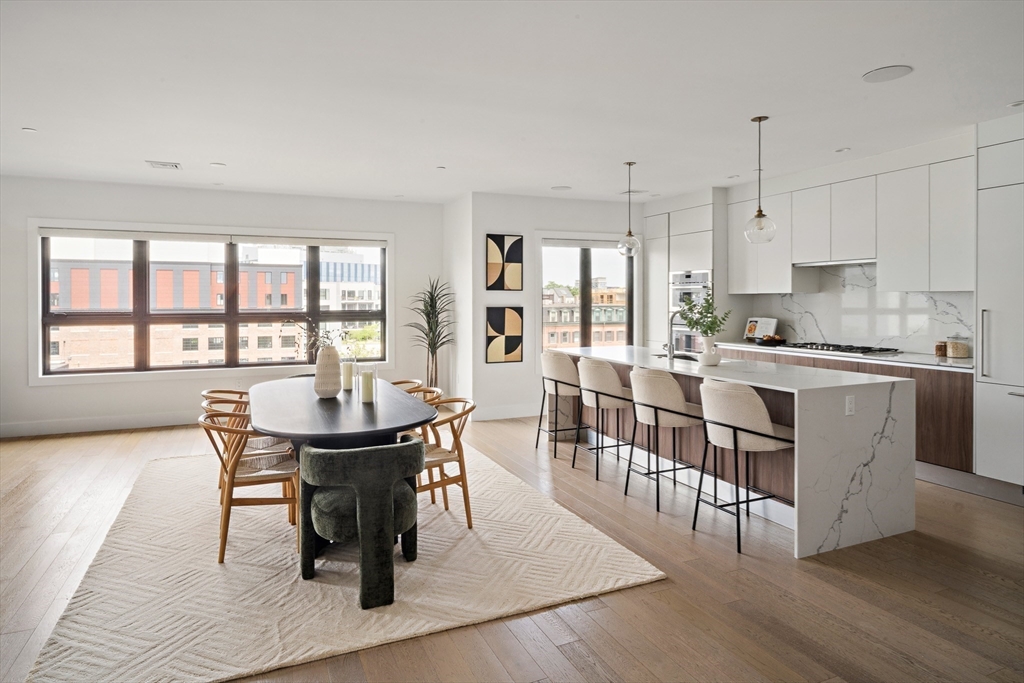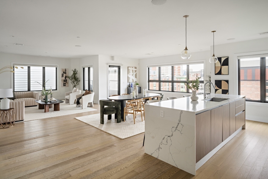 This stunning 3-plus-bedroom Penthouse offers the ultimate in high-end finishes with an ideal floor plan featuring 2 private outdoor spaces, 2 SUV GARAGE PARKING spaces, and ELEVATOR access to your front door. The chef’s kitchen boasts Scavolini cabinetry, quartz waterfall countertops & Thermador appliances. A spacious open-concept living and dining area provides the perfect setting for relaxation or entertaining, with a conveniently located private balcony. The primary suite features a walk-in California Closet and an extravagant bathroom with a floating double vanity, back-lit frameless mirrors, and an oversized shower with floor-to-ceiling Porcelanosa tile. Upstairs, find a sun-filled head house with a wet bar and beverage fridge, with access to an expansive, private roof deck, complete with cable, electricity, gas, and water. The head house is a perfect space for a fitness area, office, or reading nook. Urban convenience meets calming retreat in this thoughtfully designed home.