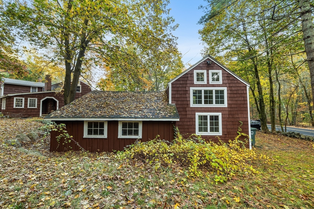 Enchanting 3 bed 1.5 bath antique colonial located on a 1 acre lot brimming with historic character across from Harold Parker State Forest! Take advantage of the perfect newer construction office space with loft off detached garage zoned general business & residential. Built around 1800, the primary residence showcases rich woodwork, custom built-ins, warm wall sconces & cozy brick fireplaces. Open-concept living room & kitchen create a perfect blend of timeless charm & modern function, featuring center island, abundant cabinetry, pantry & seamless flow for entertaining or everyday living. Convenient 1st floor laundry in half bath as well as formal dining & family rooms all with lovely built in shelving. Located in a desirable residential neighborhood, on a private, wooded corner lot, this property offers peaceful surroundings to relax, garden or gather outdoors, the warmth of history, convenience of modern living & the privacy of a country retreat just minutes from local amenities.