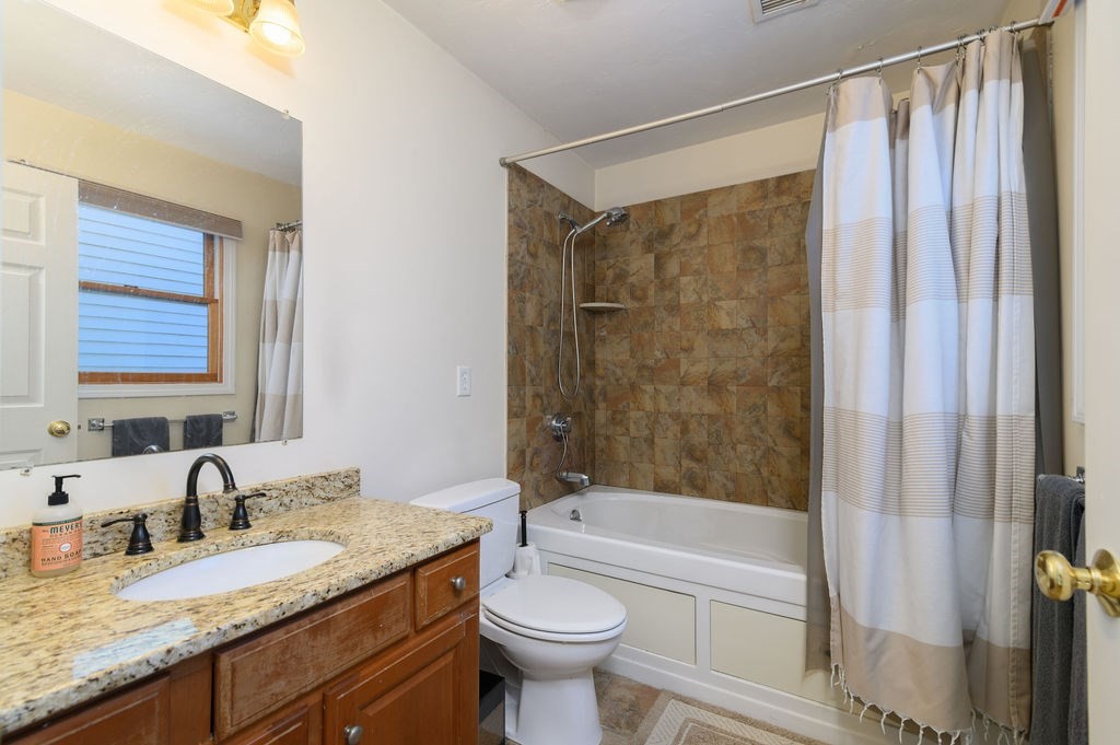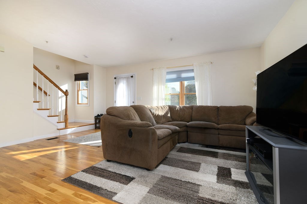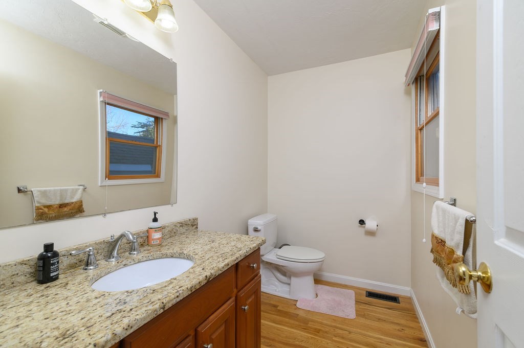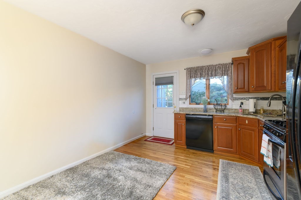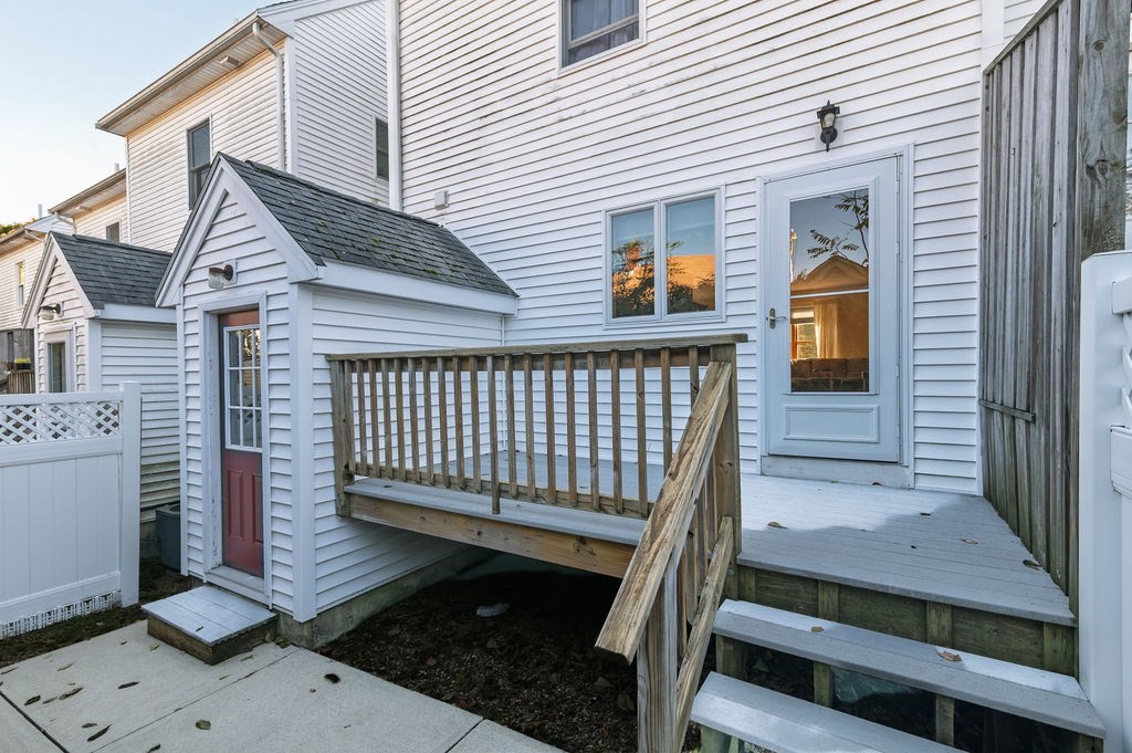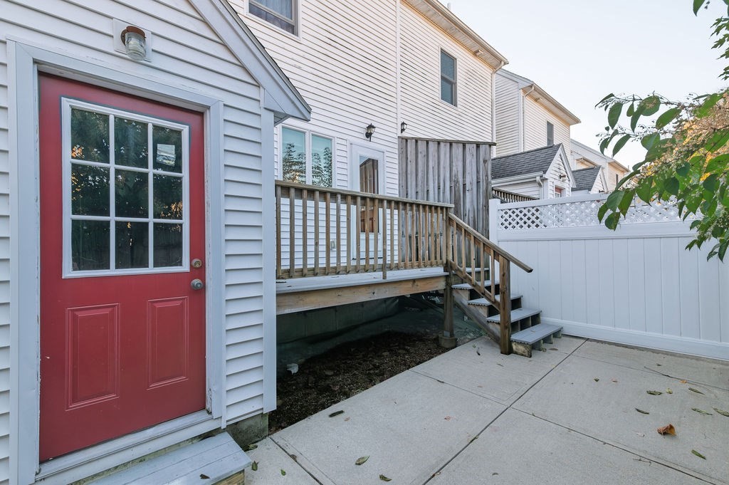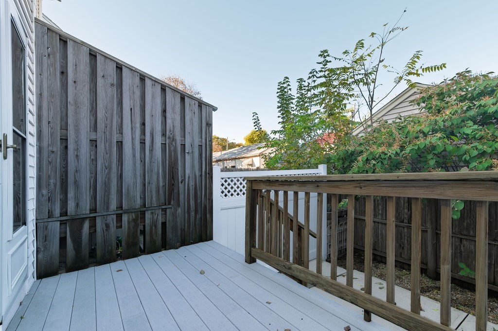 Great three bedroom condo with private backyard. First floor has hardwood through out the living room and kitchen and half bath with custom cherry kitchen cabinets and granite counter tops and a door to the deck and private back yard. Second floor has two bedrooms with wall to wall carpet and each has a great size closet. full bath with jacuzzi tub and shower. third level has a large master bedroom with cathedral celiing and another large closet. full basement ready to be finished