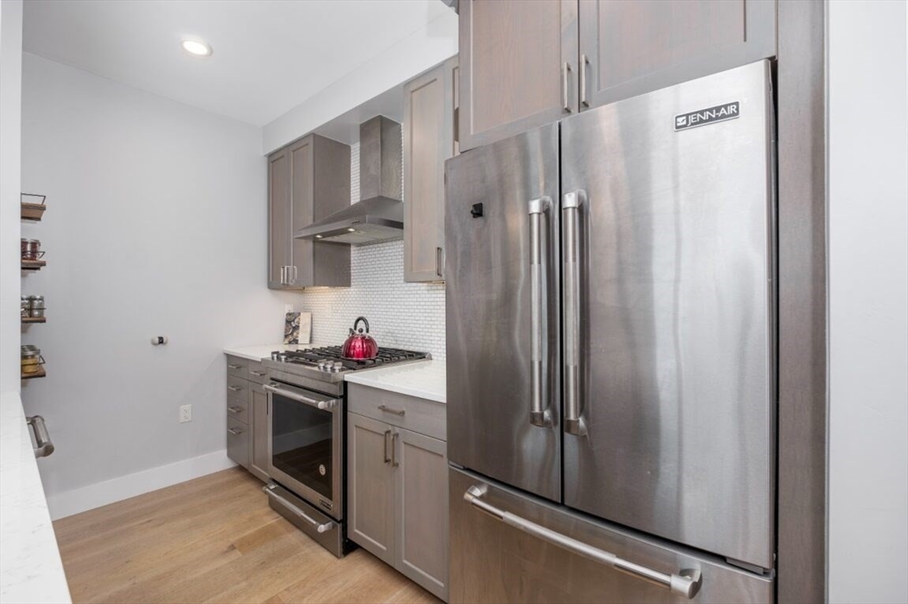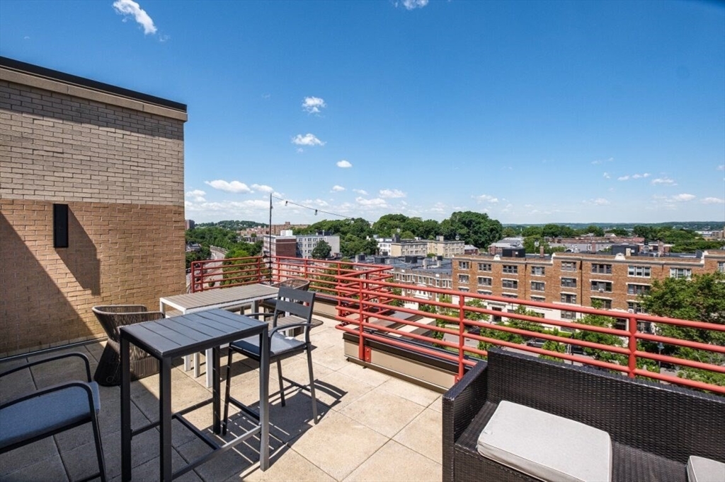 Available 1/1/2026! Luxury condo building situated on a hill overlooking Brookline and Boston. Designed inside and out with a modern style. This unit offers quartz countertops and custom cabinetry. Kitchen includes a refrigerator, oven, microwave, and more. Washing machine and dryer in unit! Condo includes a fitness center, common rooftop, and lounge. Access MBTA bus connections and green line connections. Do not miss out!