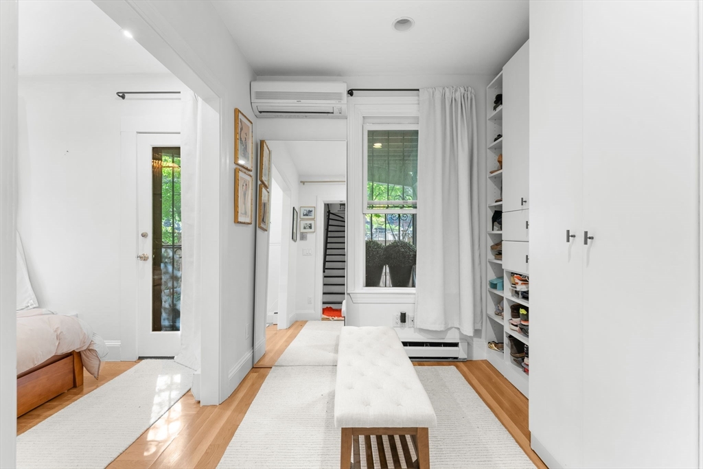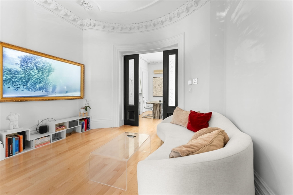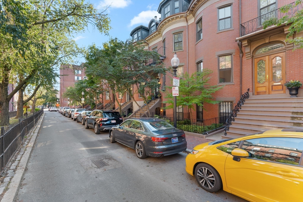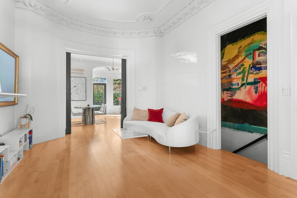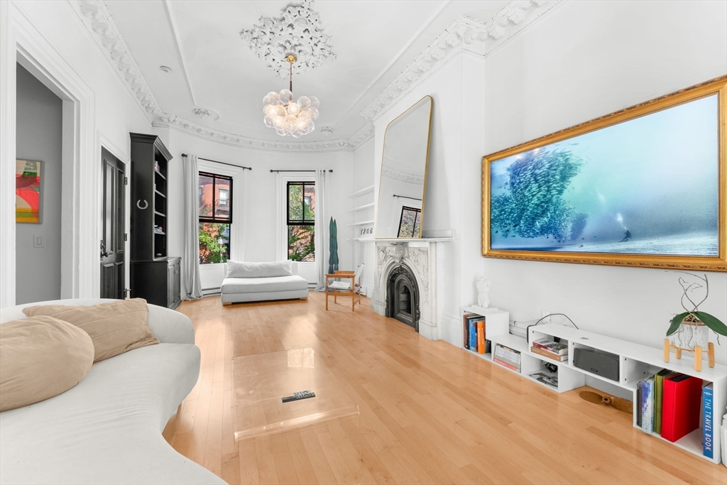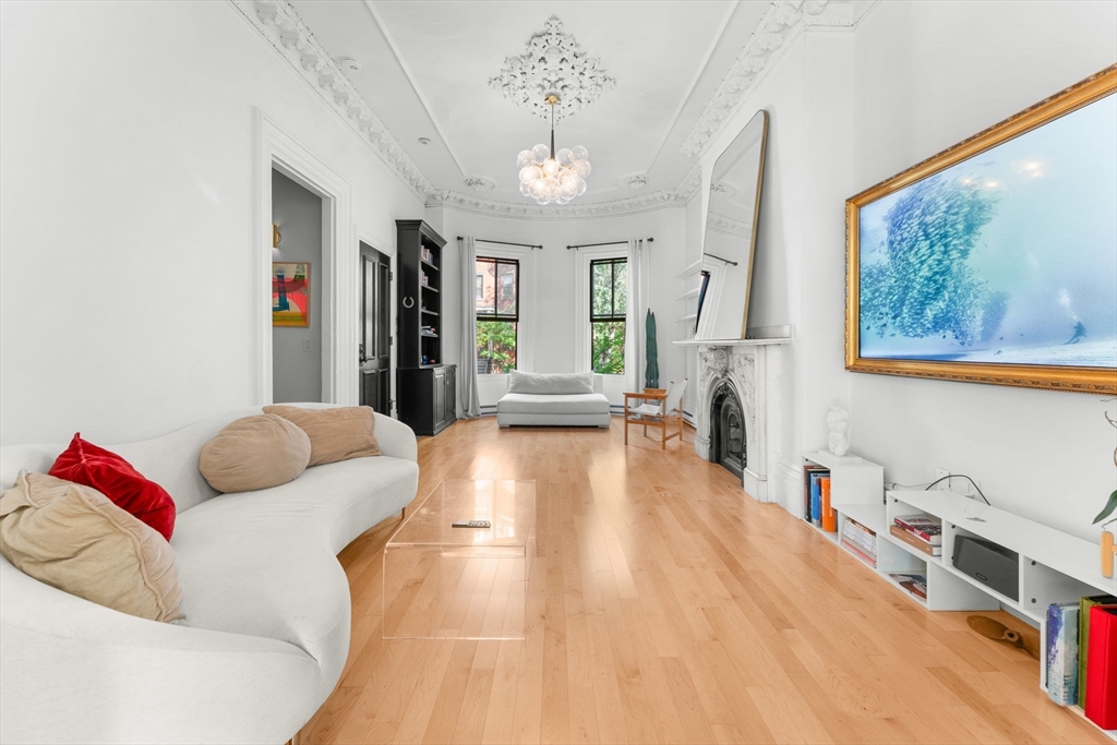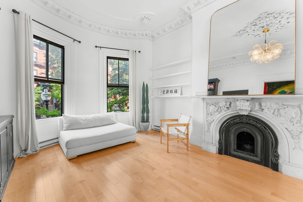 Available 1/1/26 Beautiful stained glass accents this inviting home, ideally set on one of Boston’s most picturesque Victorian squares. This exceptional South End Brownstone duplex combines timeless charm with modern updates. The elegant parlor features high ceilings, intricate moldings, a carved marble fireplace, new hardwood floors, and views of historic Concord Square. Etched-glass pocket doors open to a welcoming dining area and renovated kitchen with new convection cooktop, stainless appliances, granite counters, and a spacious island—perfect for entertaining. Enjoy a sun-filled private deck with southwest exposure and a convenient half bath on the upper level. The lower-level suite offers a large bedroom, flexible study or dressing area, renovated bath, and ample closets. In-unit laundry, electric heat, central A/C, and dedicated parking across the street provide comfort and convenience. Close to cafés, restaurants, Newbury Street, the Prudential Center, and Boston Medical Center