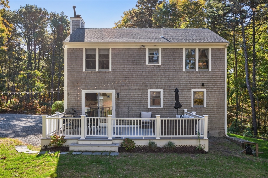 Live the Cape Cod lifestyle year-round in this two bedroom, two bath home built in 1993 by Reef Builders. Perfect for entertaining, it features a large deck, refreshed landscaping with a new lawn and blue stone driveway, and a spacious yard ideal for summer BBQs, alfresco dining, and outdoor games. The surrounding landscape of native huckleberry, pine, and oak, interspersed with native grasses, creates a bird lover's paradise—bringing color, song, and life right to your doorstep. Designed with a 3-bedroom septic and potential to expand—including space for a garage—plus a very dry walk-out basement, this home offers flexibility for the future.