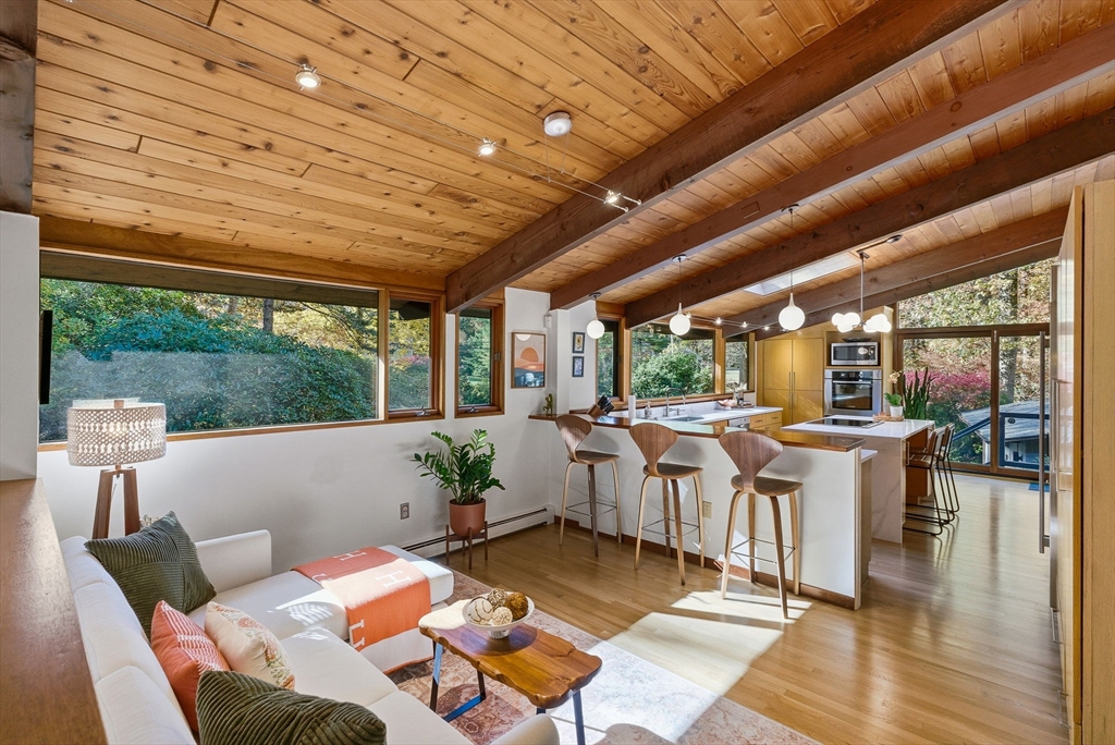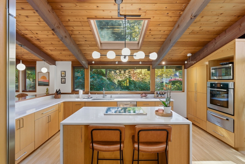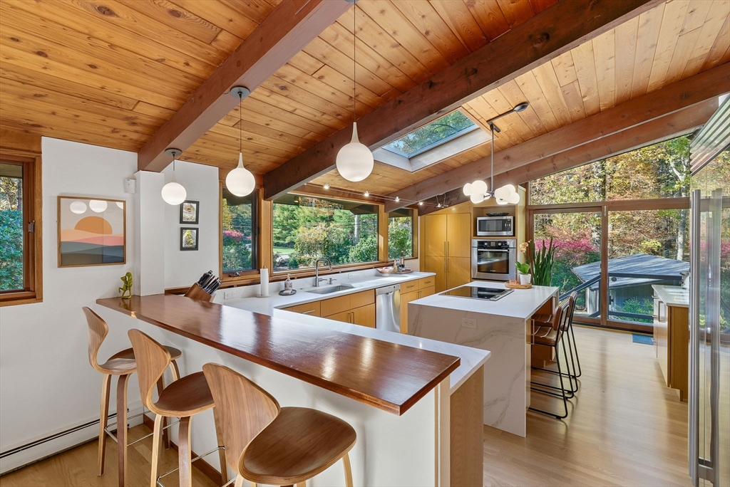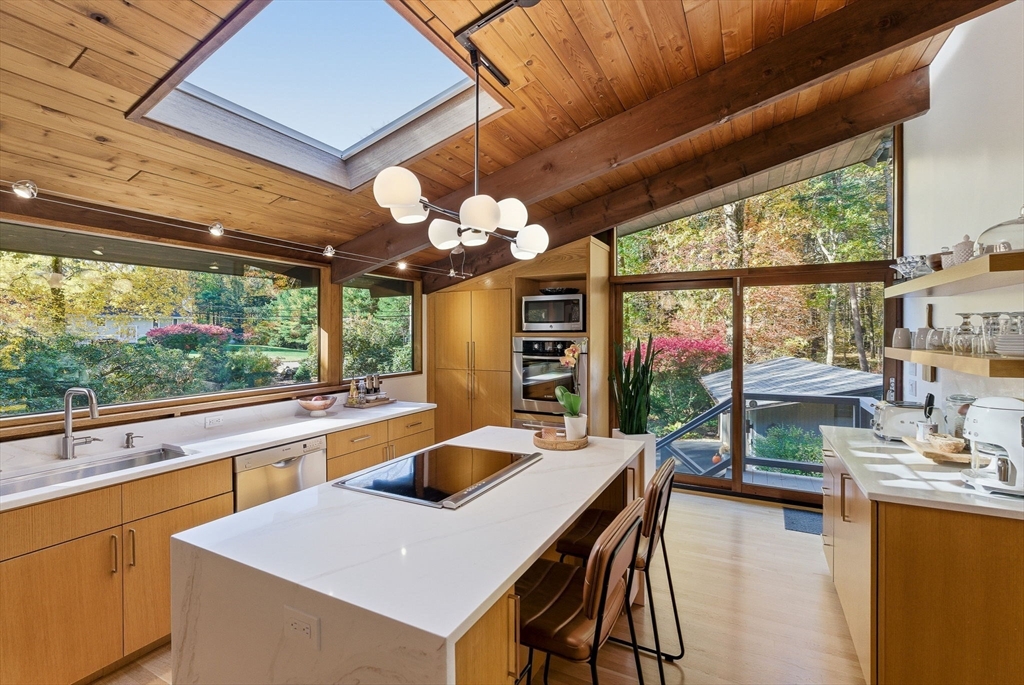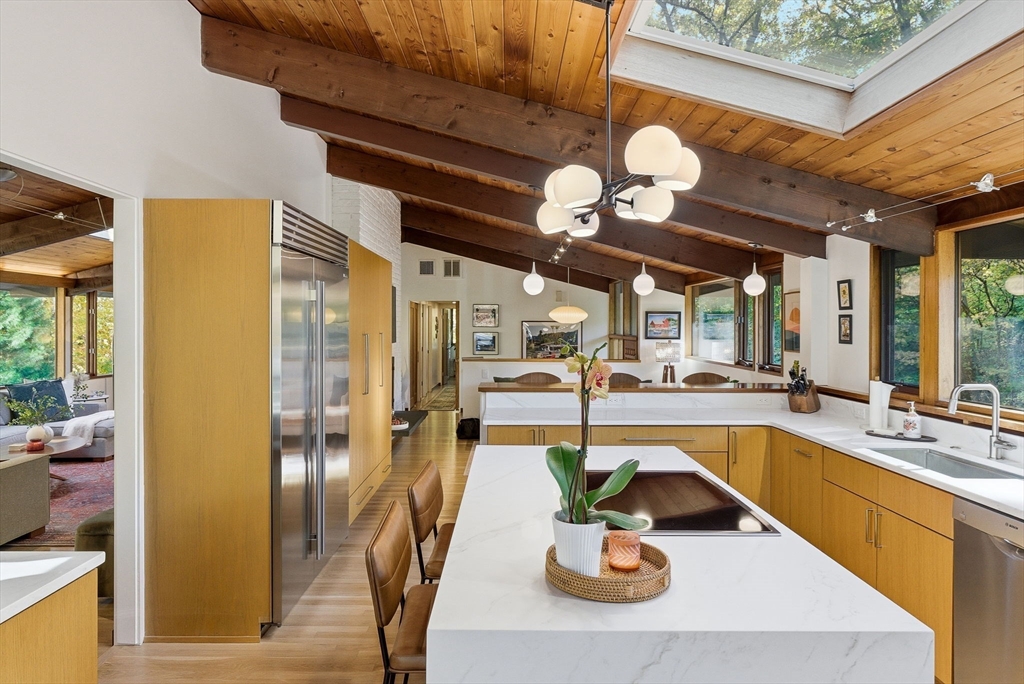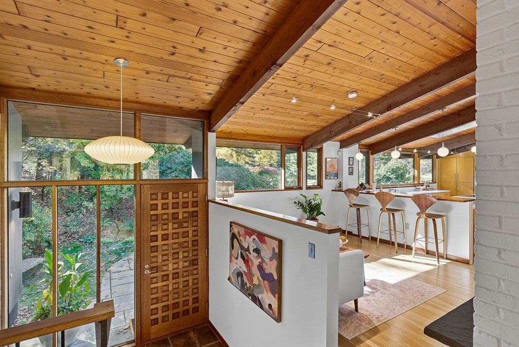 PERFECTION….IMPROVED! Current owners have improved upon this STUNNING home w/ $180,000+ in carefully chosen upgrades. The incredible backyard has been re-imagined w/ sod, irrigation & new plantings, large, private 3-tier deck & brick patio w/landscape lighting throughout - gorgeous enough to host a wedding (and it did)! This is the Mid-Century modern home of your dreams! Large windows throughout bring the outside in - in every room. Bright sunlight mornings & afternoon due to new skylights. Fabulous grounds feature many varieties of mature perennial plantings. This open concept classic is beautifully maintained inside & out, w/ decorating which is in line w/ the authenticity of this sought-after architecture. Chefs dream Kitchen features SS appliances, a new 48” Sub-zero refrigerator, waterfall quartz center island, new cabinets doors & even a coffee bar - w/ views that will enhance your love of cooking - and eating! Private retreat setting w/ trails in the woods. Flexible floor plan!