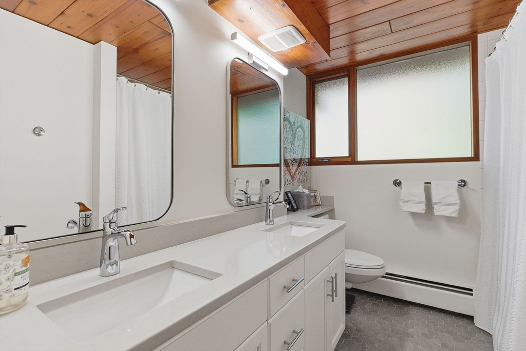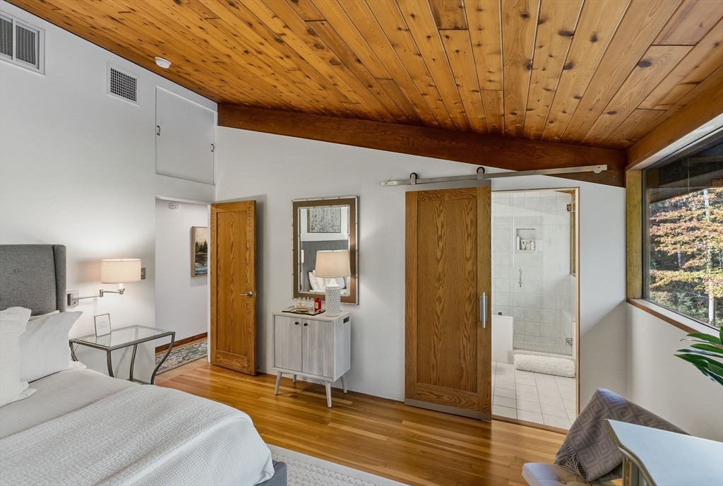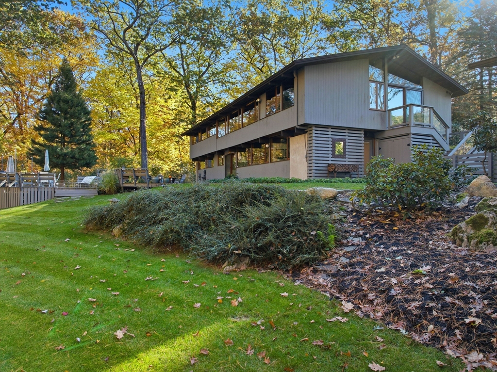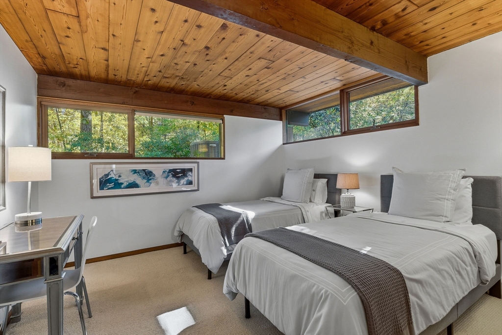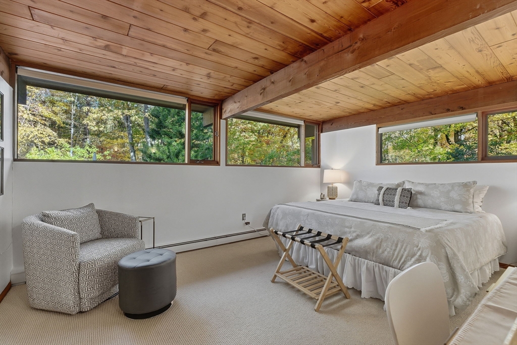 PERFECTION….IMPROVED! Current owners have improved upon this STUNNING home w/ $180,000+ in carefully chosen upgrades. The incredible backyard has been re-imagined w/ sod, irrigation & new plantings, large, private 3-tier deck & brick patio w/landscape lighting throughout - gorgeous enough to host a wedding (and it did)! This is the Mid-Century modern home of your dreams! Large windows throughout bring the outside in - in every room. Bright sunlight mornings & afternoon due to new skylights. Fabulous grounds feature many varieties of mature perennial plantings. This open concept classic is beautifully maintained inside & out, w/ decorating which is in line w/ the authenticity of this sought-after architecture. Chefs dream Kitchen features SS appliances, a new 48” Sub-zero refrigerator, waterfall quartz center island, new cabinets doors & even a coffee bar - w/ views that will enhance your love of cooking - and eating! Private retreat setting w/ trails in the woods. Flexible floor plan!