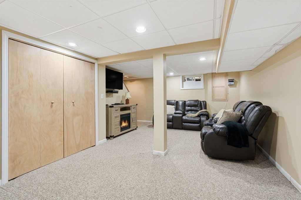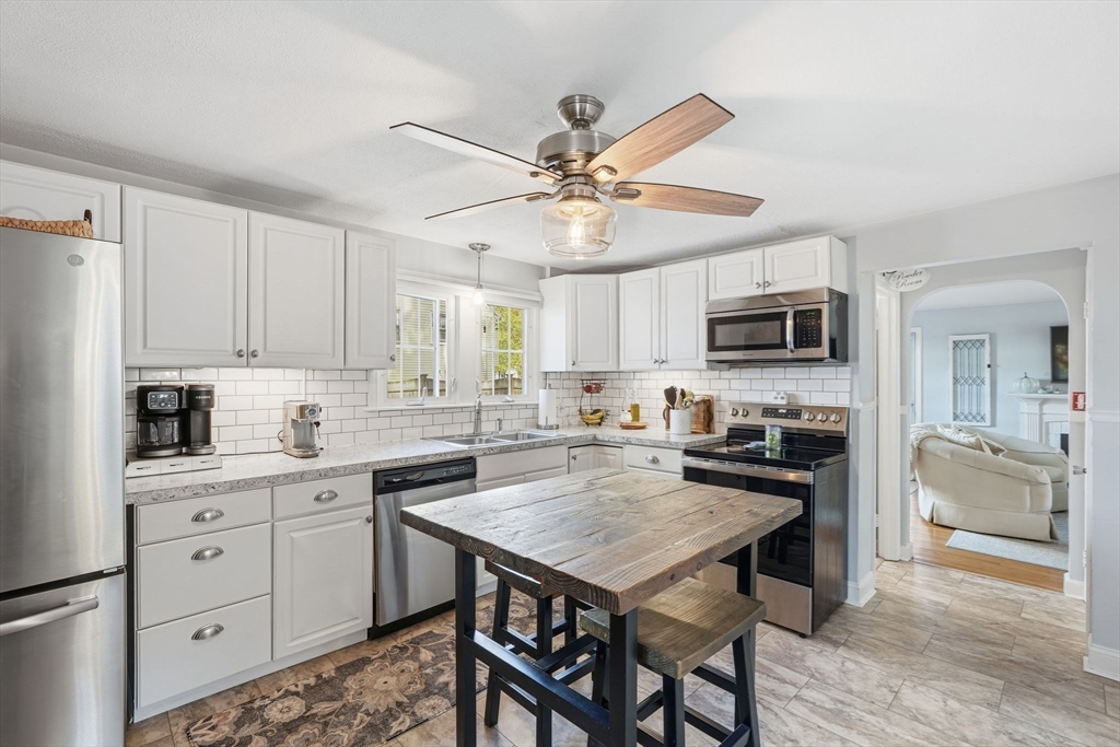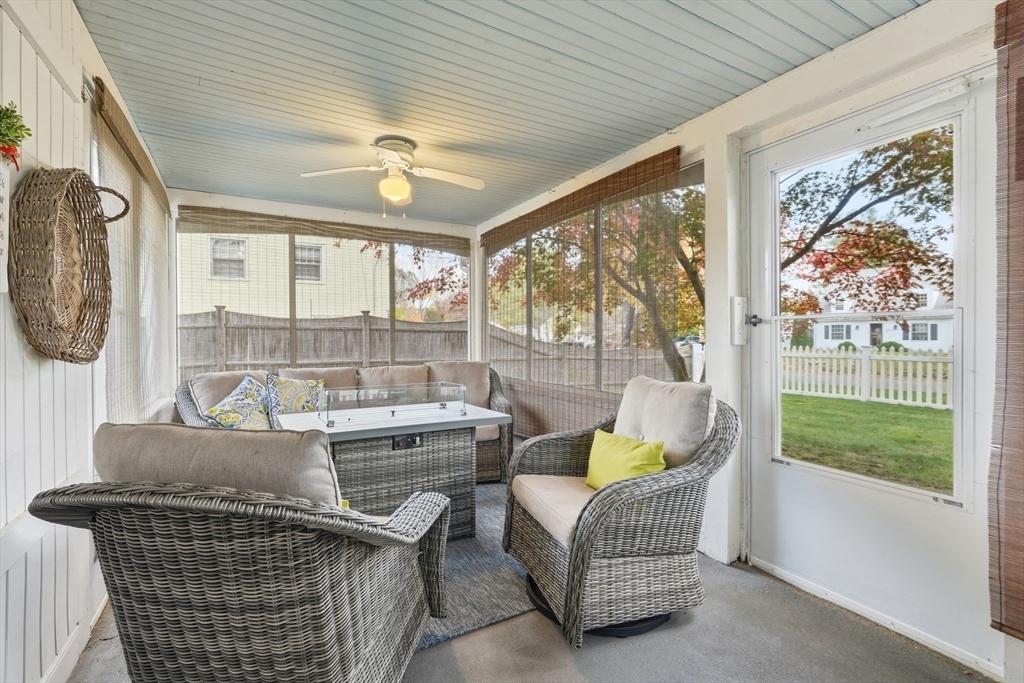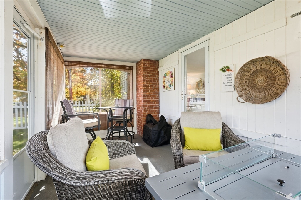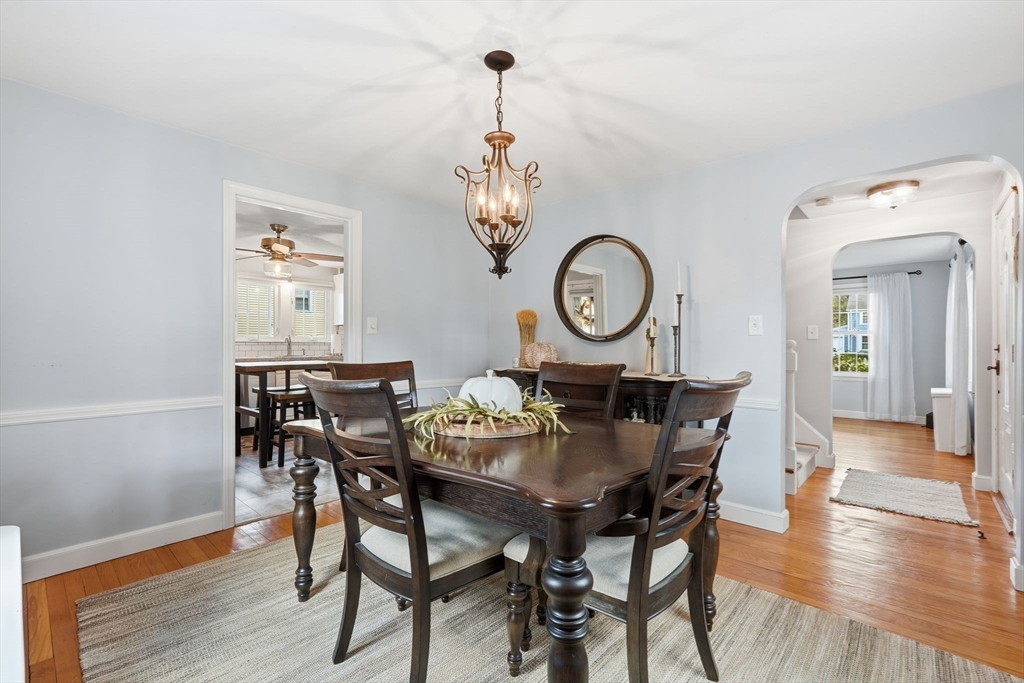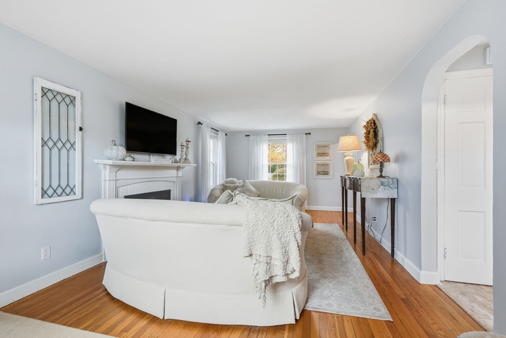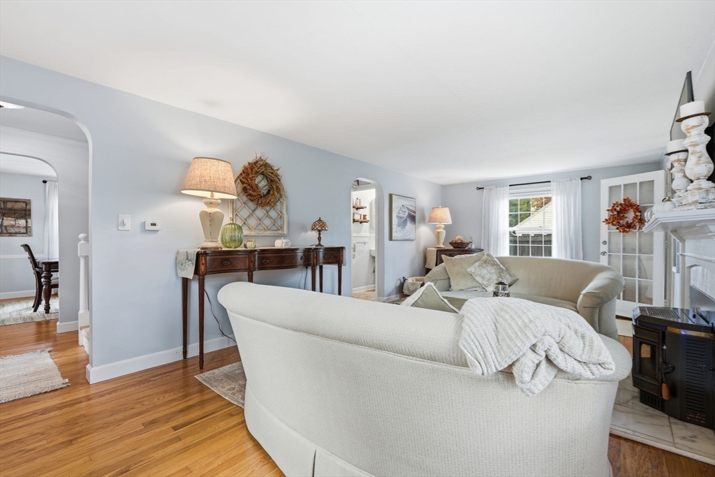 Nestled on desirable street in prime location, this charming colonial radiates warmth, character & exceptional curb appeal sitting on well-landscaped corner lot. Bathed in natural light, the inviting interiors boast a seamless circular flow. Living room captivates with arched openings, a wood-burning fireplace with elegant mantel & French door opening to cozy screened porch featuring a tongue-and-groove wood ceiling & new screens—ideal for serene outdoor relaxation. The bright, modern kitchen shines w/crisp white cabinetry, stainless steel appliances, a pantry closet & LVP flooring, effortlessly connecting to dining room adorned with chair rail. Upstairs, three bedrooms with hardwood floors & ample closets accompany a refreshed full bath & versatile flex space perfect as a nursery, home office or dressing room. Lower level offers a finished space w/recessed lighting, plus an unfinished area housing the mechanicals & laundry hookups. A true gem blending classic charm w/modern comforts.