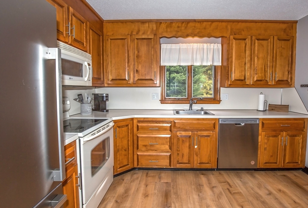 SUPER CONDO in much sought after CANDLEWOOD VILLAGE. Townhouse style unit with two large sized bedrooms and 2.5 Baths! Bright, open living room / dining area overlooks private DECK through FRENCH DOORS. The fully applianced kitchen is large enough for a small table and there is a pantry for extra storage! The primary bedroom offers double closets and a private full bath with a walk-in shower. The second floor also offers a second bedroom and a second full bath. Other special features include: a newer A/C unit, Newer flooring on the first floor, GAS Heat, a large basement area perfect for play, storage or possible additional living space! Outside you have your very own 1 car GARAGE with room for parking in front along with other designated parking for your visitors. Minutes from Highways, Shopping and restaurants --- this professionally managed complex a perfect place to call HOME! NOTE: Furnishings are negotiable. Pool table to be removed prior to closing