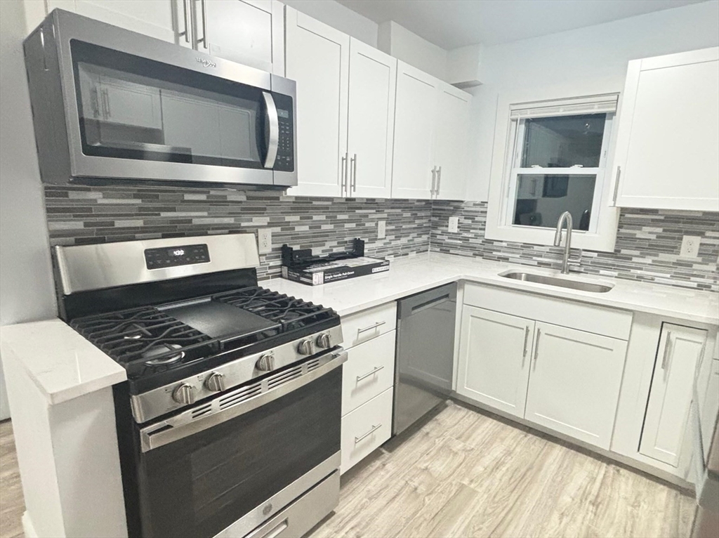 Beautifully renovated apartment! This spacious unit features two bedrooms, a bright living room, dining room, and a modern kitchen with new appliances. Enjoy the convenience of having and a driveway that fits two cars per unit. The property also offers a large backyard — perfect for relaxing or entertaining with friends and family. First and last month, plus security deposit.