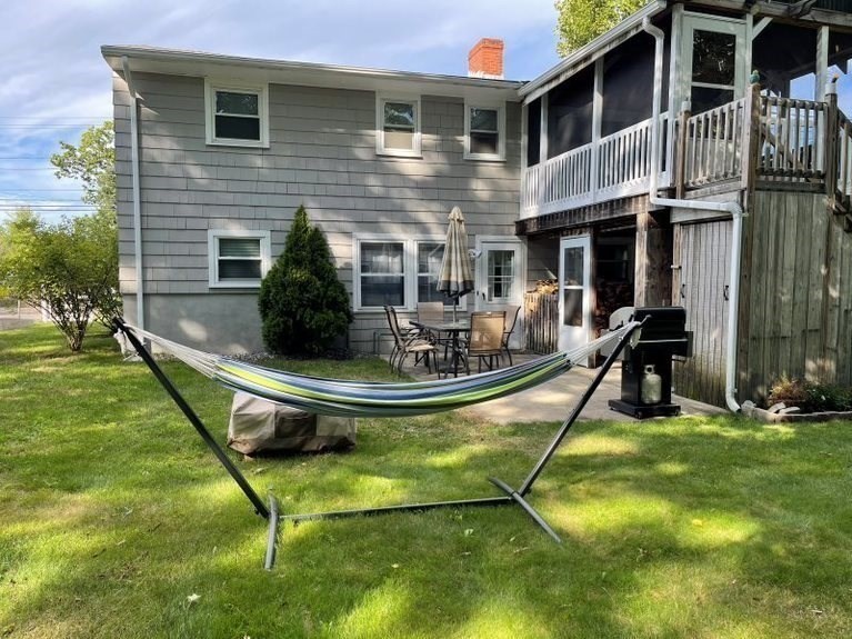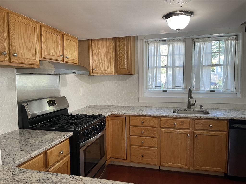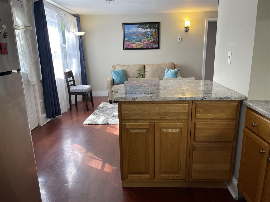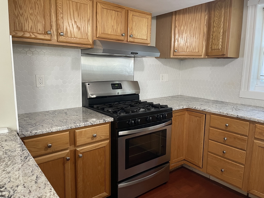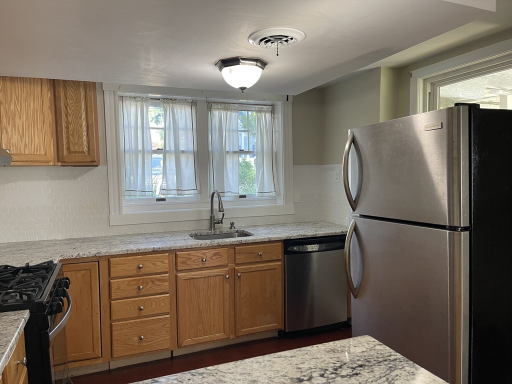 Light and Bright Beautifully updated 2BR apartment w/separate utilities on ground level of bi-level home. Tastefully renovated kitchen w/granite countertop & gas cooking, remodeled modern bathroom, beautiful hardwood/new flooring throughout. Features good-size bedrooms, fireplaced Living Room with direct access to lovely expansive backyard greenspace. Offers driveway parking, Washer & Dryer provided in apt. Awesome setting very convenient to downtown Canton, close to restaurants, shopping, drugstore, commuter train, library and post office.
