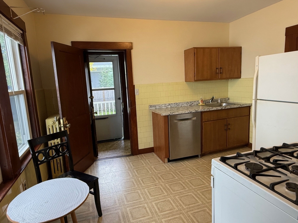Discover the charm of 63 Park Street, Unit 1, in Arlington. This elegant 2-bedroom, 1-bathroom apartment spans 1,100 square feet, offering classic charm and ample space. Enter through French doors into a welcoming foyer, leading to a spacious living area & separate dining room, featuring gleaming hardwood floors and a built-in dining vitrine. The kitchen, with its additional butler’s pantry, enhances the home’s functionality and storage. Generous bedrooms provide ample space for relaxation. Enjoy in-building laundry facilities, with both a washer & dryer, plus driveway parking for two cars .Outdoor enthusiasts will appreciate the deck & backyard. This home is peacefully situated on a quiet street, yet is just steps from the scenic Mystic River and vibrant Arlington Center for restaurants and shopping, there are 5 different MBTA routes for easy of transportation offering a seamless blend of tranquility and accessibility.