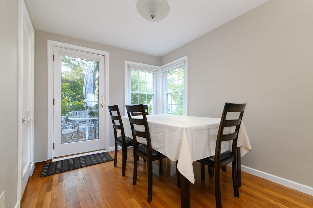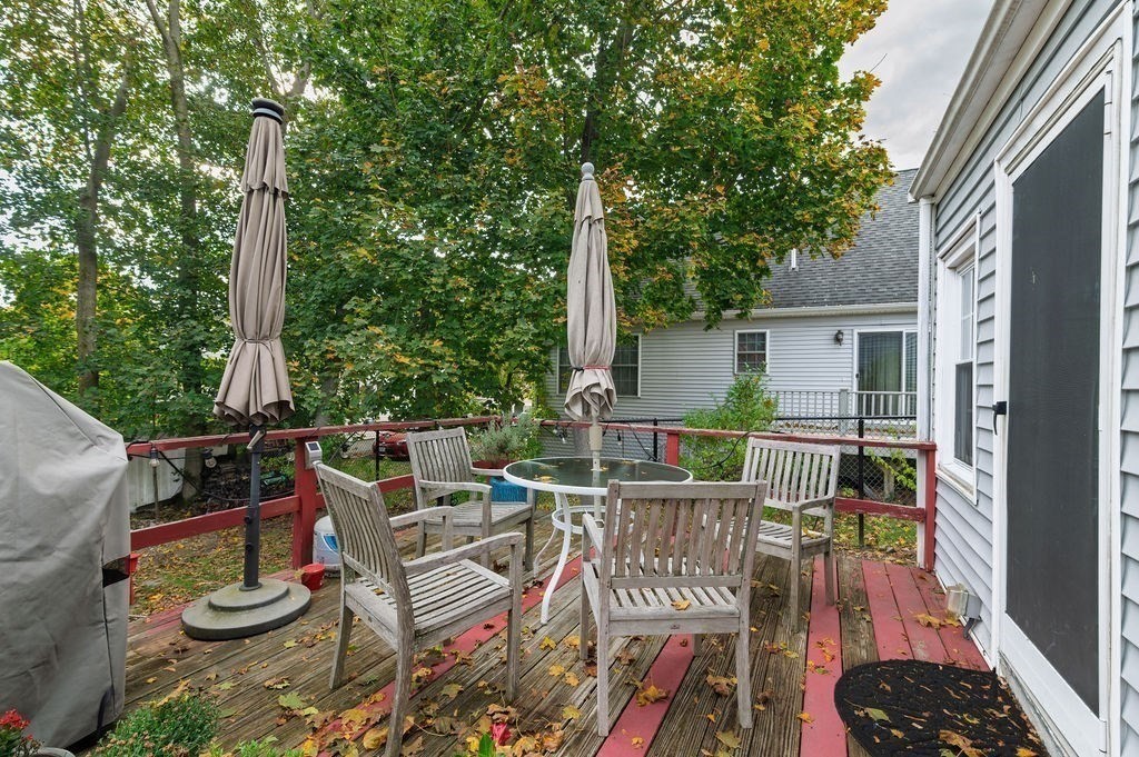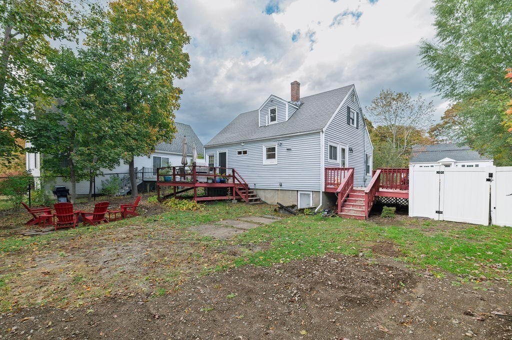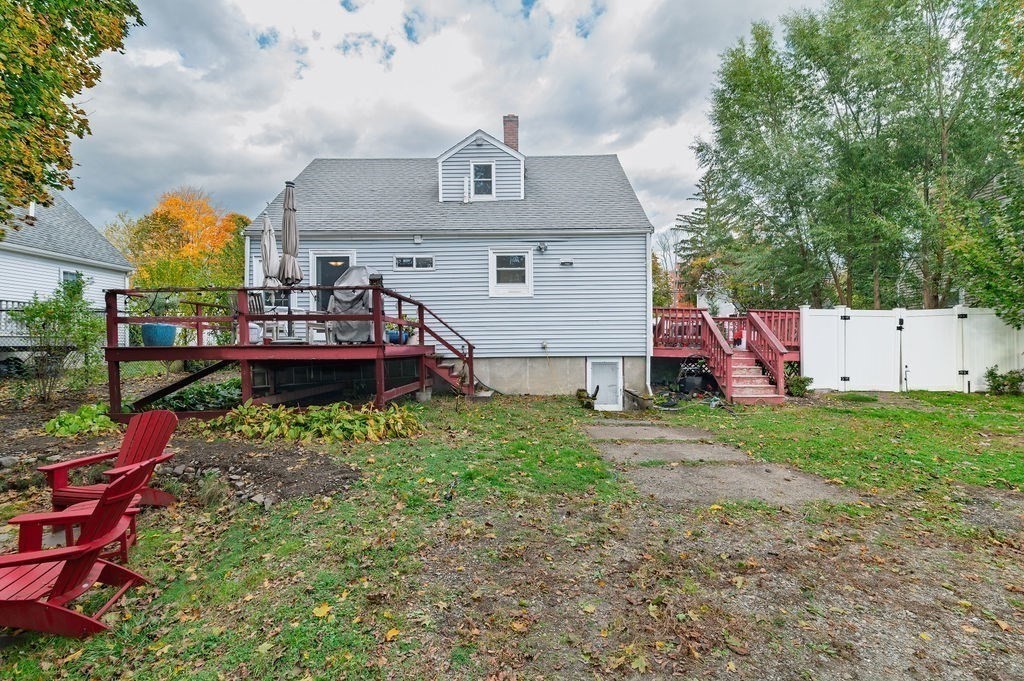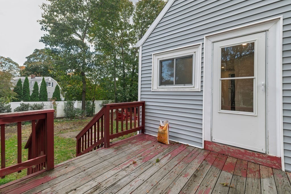 3 bedroom Cape offers kitchen with efficient layout to optimize storage, updated cabinets, quartz counters and pantry. Dining room opens to Livingroom and exits onto deck overlooking the enclosed back yard. Hardwood floors throughout the main level. First floor bedroom features plenty of natural light, and large closet. Full updated bath completes the first floor. Upstairs find 2 bedrooms with ample closet space and a full bath with stand-up tiled shower and updated vanity. Outside create your own oasis in the enclosed yard. Featuring mature apple fruit tree, deck overlooking yard and gathering space for fire pit or entertaining. Additional space in basement for storage or future expansion of living area. Convenient location on a side street near Weymouth Landing commuter rail and restaurants.