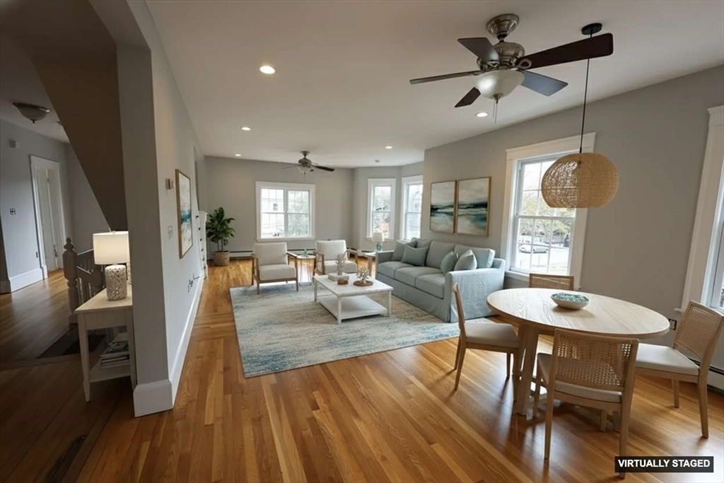 Welcome to this beautiful apartment in a well maintained home. This 2nd floor unit is generously sized. Featurig freshly refinished hardwood floors, brand new paint throughout, new main bathroom floor and new vanity, new carpeting being installed in bedrooms, new kitchen fridge and stove to be installed. With 4 spacious bedrooms, this home provides flexible living space perfect for a large household, bonus room on the 1st level can be a office or guest room. Parking off street for 2 cars, storage space and washer dryer hook ups in the unit. Be in time to celebrate the holidays with the entire family. Conveniently located in a nice quiet Stoneham neighborhood close to shops, restaurants, public transportation and major routes. Available 11/1/25 with all finishing touches to be completed. A great opportunity to enjoy a freshly updated home in a prime location!!