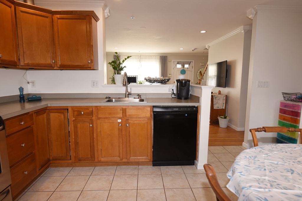 Meticulous townhouse in the highly desirable Boxberry Square community! Nothing to do but move right in. This beautifully maintained home features 2 large bedrooms, 1.5 baths, and a full finished basement—ideal for a family room, guest space, or home office. Perfect for families, couples, or downsizers alike! The bright eat-in kitchen offers maple cabinets and crown molding, leading to a private deck and fenced patio/yard. The living room boasts gleaming hardwood floors and recessed lighting throughout, with Berber carpet on the stairs and second floor. Enjoy peace of mind with a brand-new roof (Aug 2025), a 5-year-old tankless hot water heater, and a 4-year-old whole-home water filtration system. Pride of ownership shines throughout this well-maintained complex. Low condo fee of just $288/month. Includes 1 deeded and 1 floating parking space, plus plenty of guest parking. Open House Sunday 11–12:30!