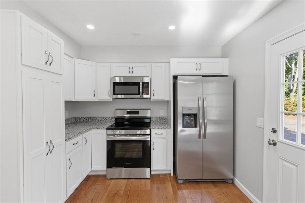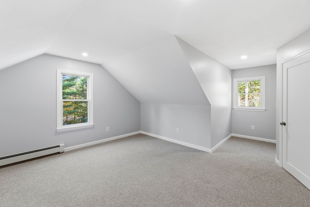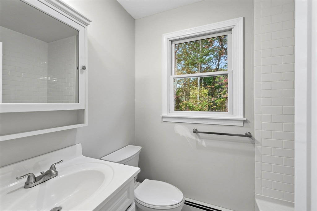 This completely renovated East Falmouth home is a must-see to fully appreciate the quality and attention to detail throughout. Privately set on 1.6 acres, the property was taken down to the studs and thoughtfully redesigned inside and out. Boasting 3 bedrooms, it also features an additional bonus room/office. Every major component is new, including the roof, siding, exterior trim, gutters, heating system, and deck. Inside, you'll find brand-new hardwood floors, recessed lighting throughout, remodeled bathrooms, and carpeted bedrooms for added comfort. The inviting living area features a cozy fireplace, creating a warm and welcoming centerpiece for the home. High ceilings in the basement offer excellent potential for future finished space. This is not a drive-by--come see it in person to truly appreciate everything this home has to offer.