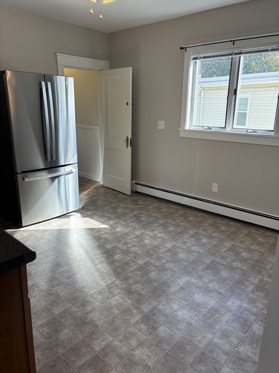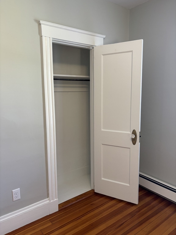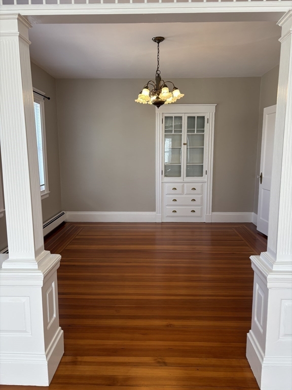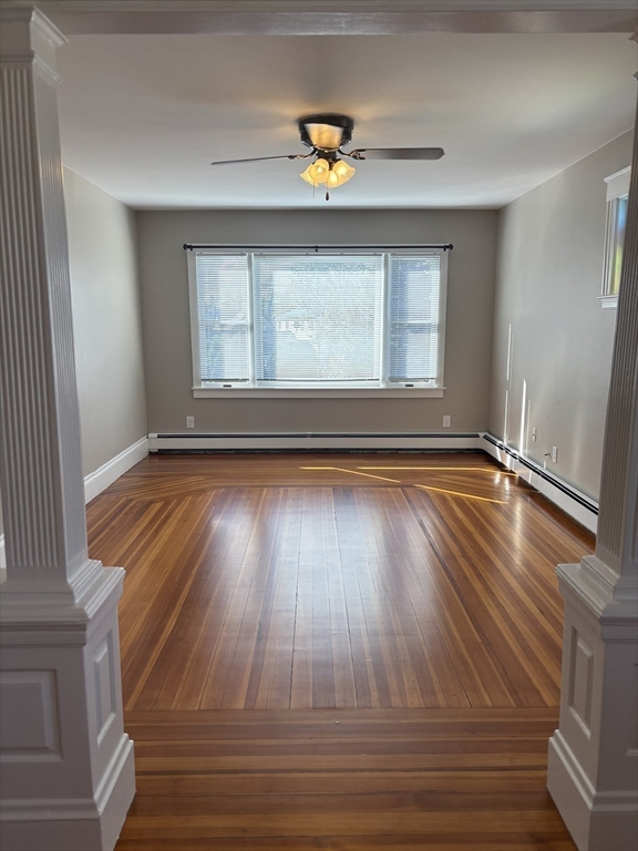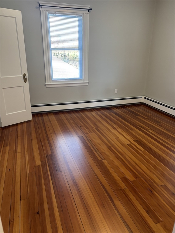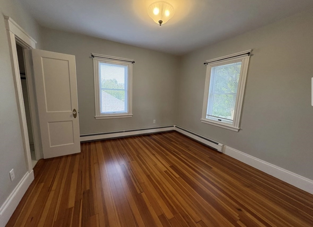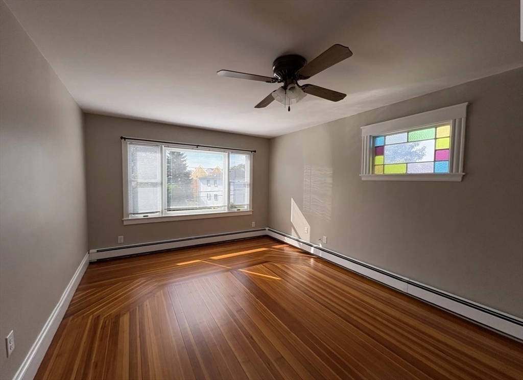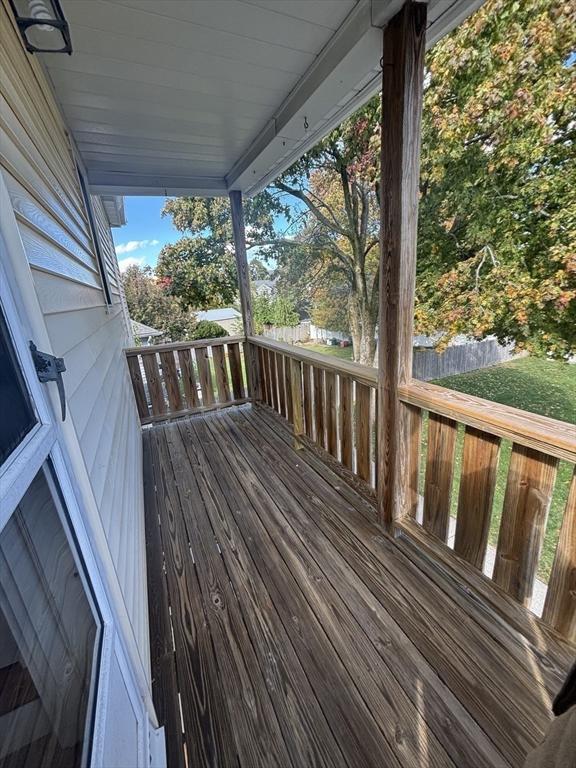 Welcome home to this beautifully maintained and freshly updated two-bedroom apartment in a desirable Quincy neighborhood, located close to Public Transit, Major Highways, Restaurants & Parks. The unit features a kitchen with brand-new stainless steel appliances, generous cabinet space, and a functional layout that leads you right into the formal dining room and the bright, open living room. Charming original stained-glass details and warm hardwood floors throughout add a touch of character to the home, blending timeless charm with modern convenience. Enjoy outdoor living on your private deck and a shared backyard. Additional highlights include good closet space, lots of basement storage and laundry hookups. Two tandem off-street parking spots are included for added convenience.